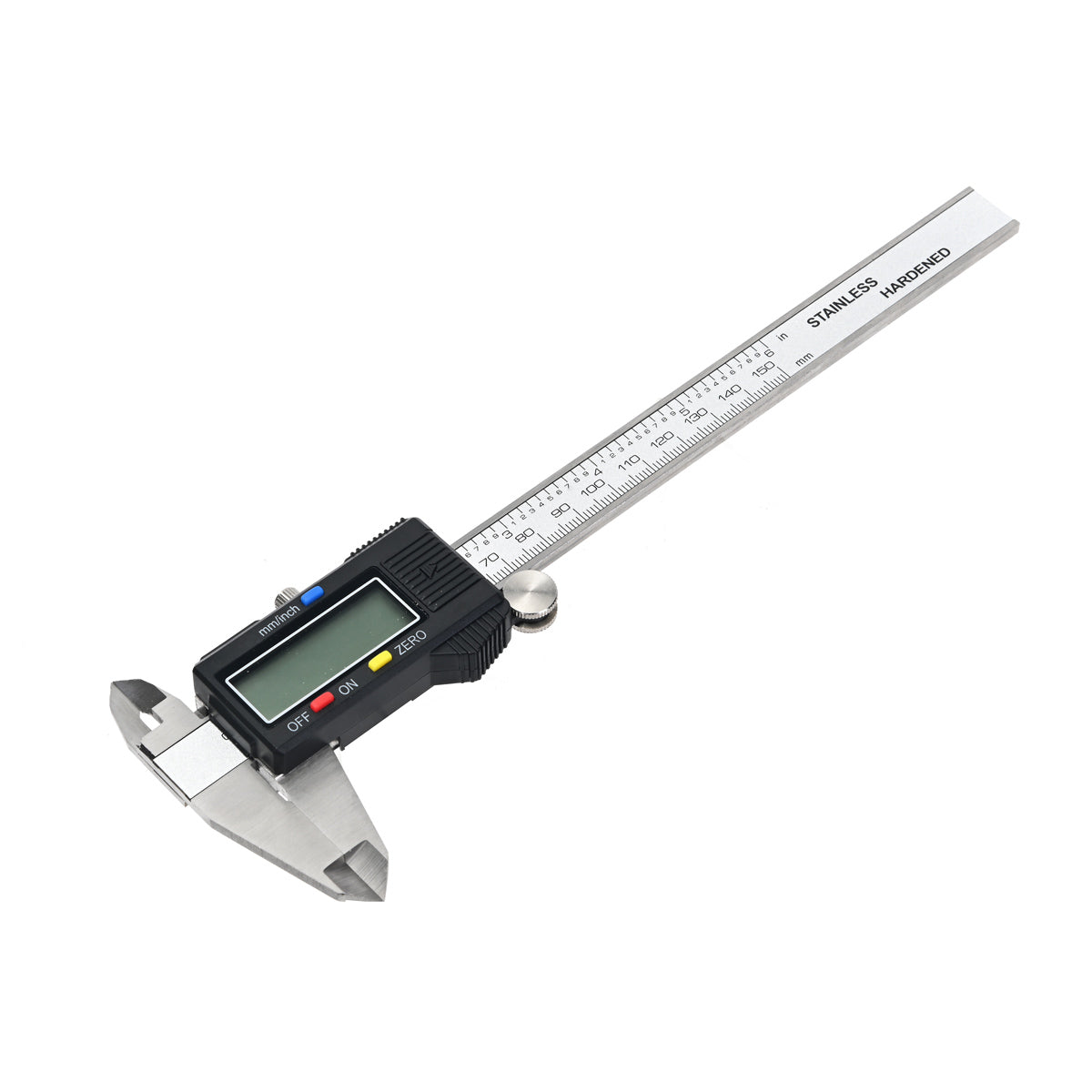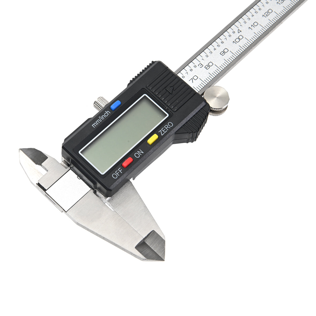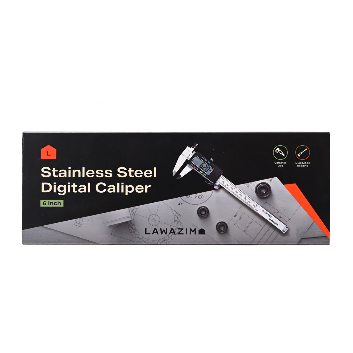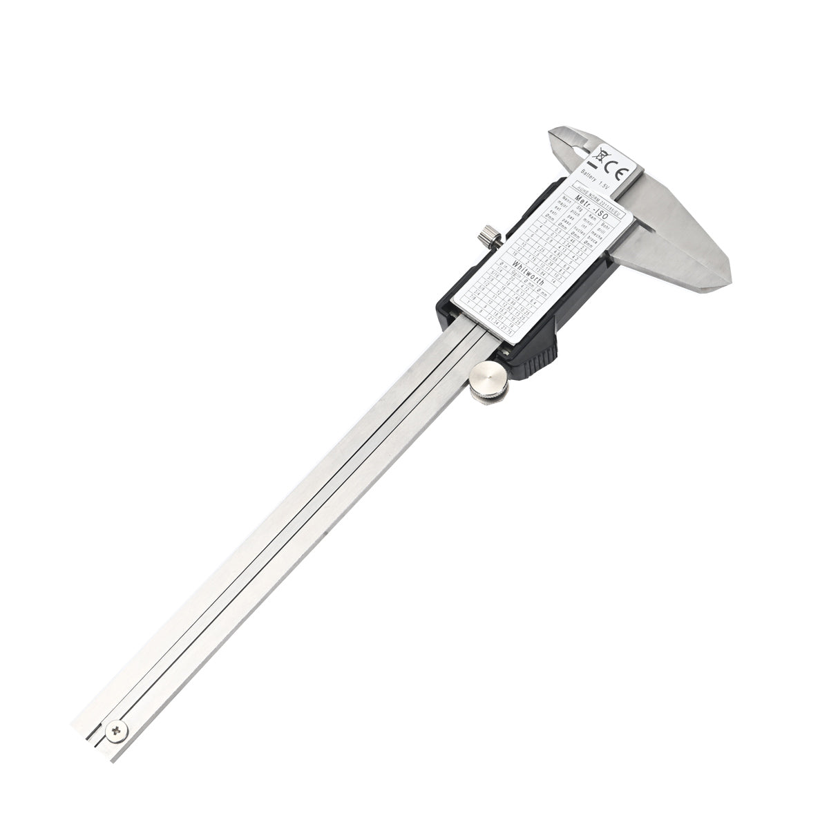 فرجار رقمي - 6 بوصات - فرجار فيرنيه من الفولاذ المقاوم للصدأ مع شاشة LCD، أداة قياس إلكترونية دقيقة لقياس العمق والخطوة