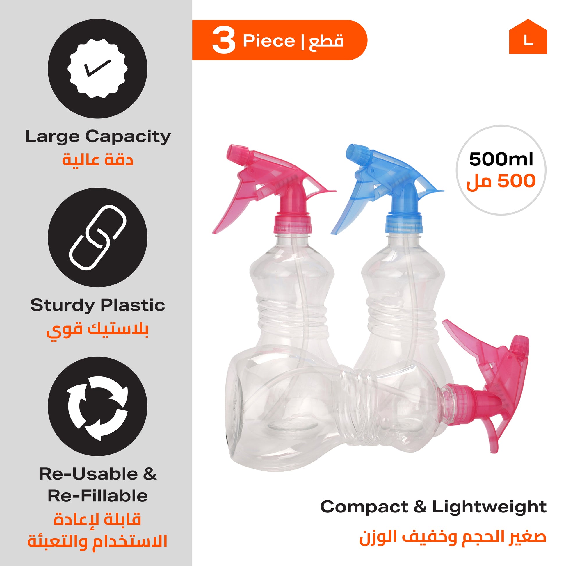 مجموعة زجاجات رش بلاستيكية فارغة - 3 زجاجات بفوهة قابلة للتعديل سعة 500 مل للتنظيف والبستنة والعناية بالشعر
