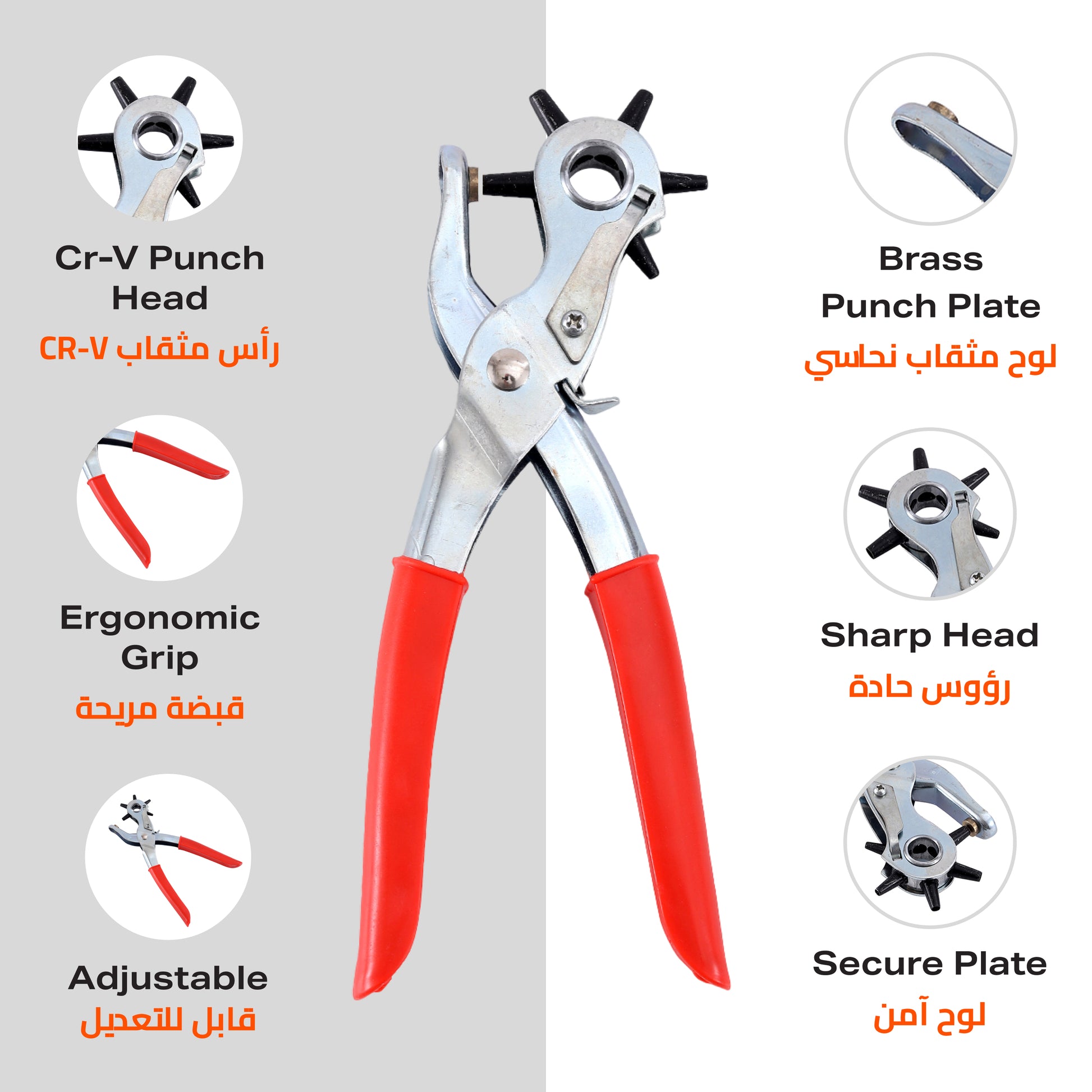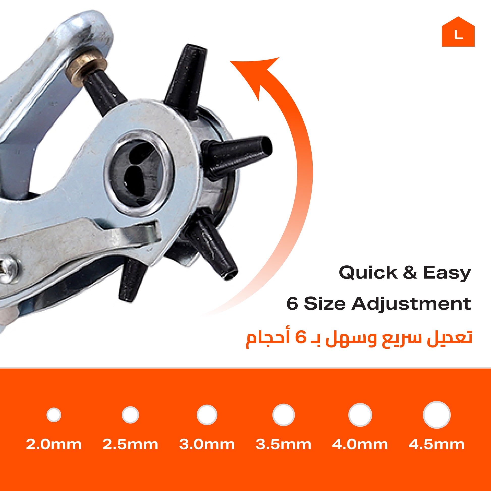 مجموعة من قطعتين لثقب الجلد - أداة ثقب قابلة للتعديل بستة أحجام للأحزمة والقماش والحرف اليدوية والأعمال اليدوية والجلود