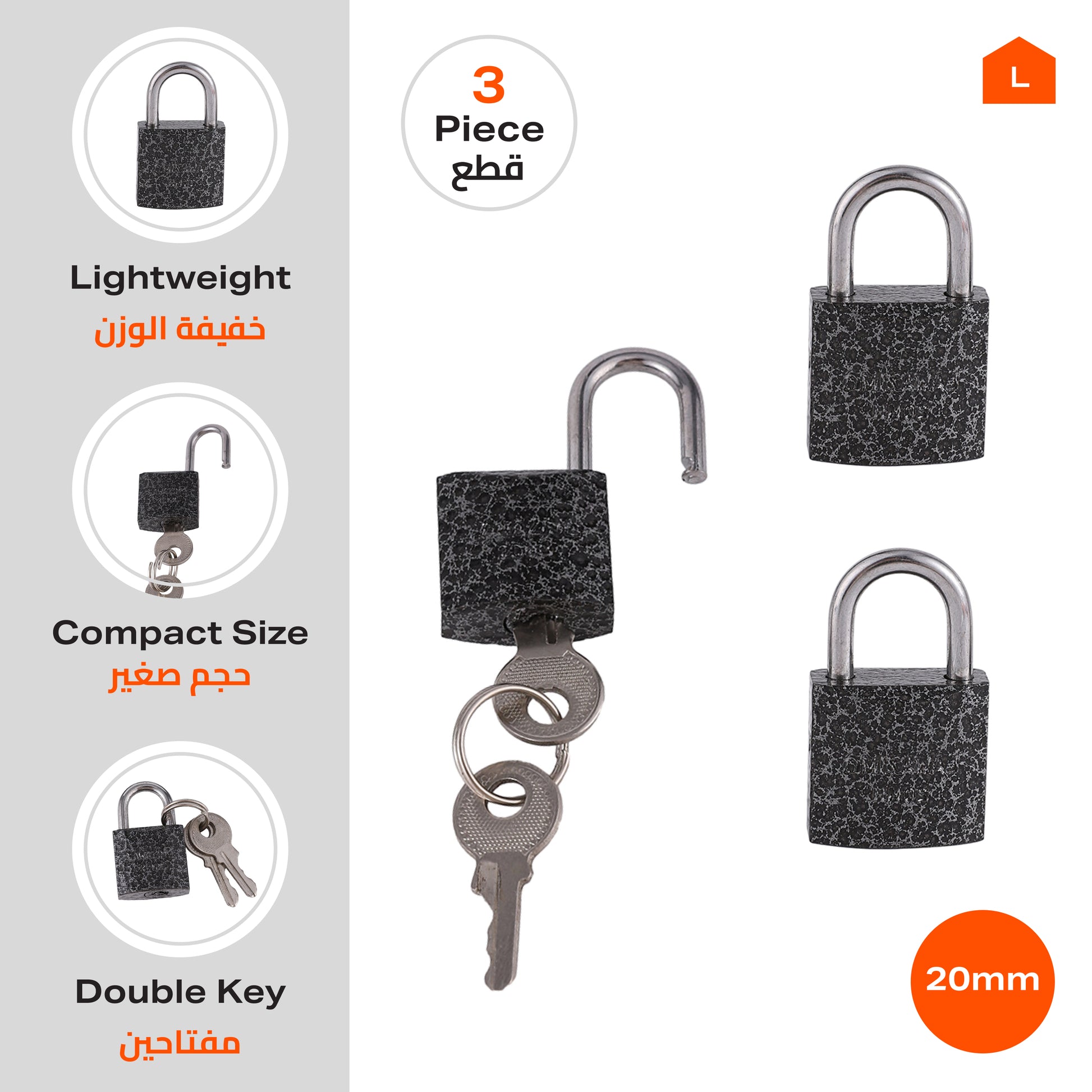قفل - مجموعة من 3 قطع بمفتاح 20 مم للبوابات والأبواب والخزائن وصناديق الأدوات والدراجات والأمتعة والخزائن