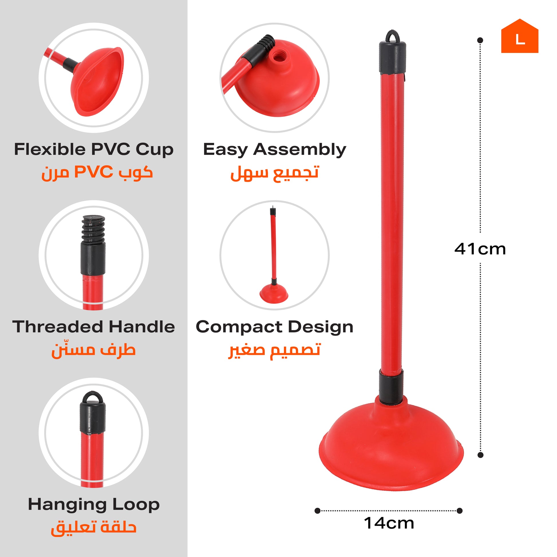 مكبس مرحاض مطاطي - أداة سباكة حمراء للمراحيض والأحواض ومصارف المنازل
