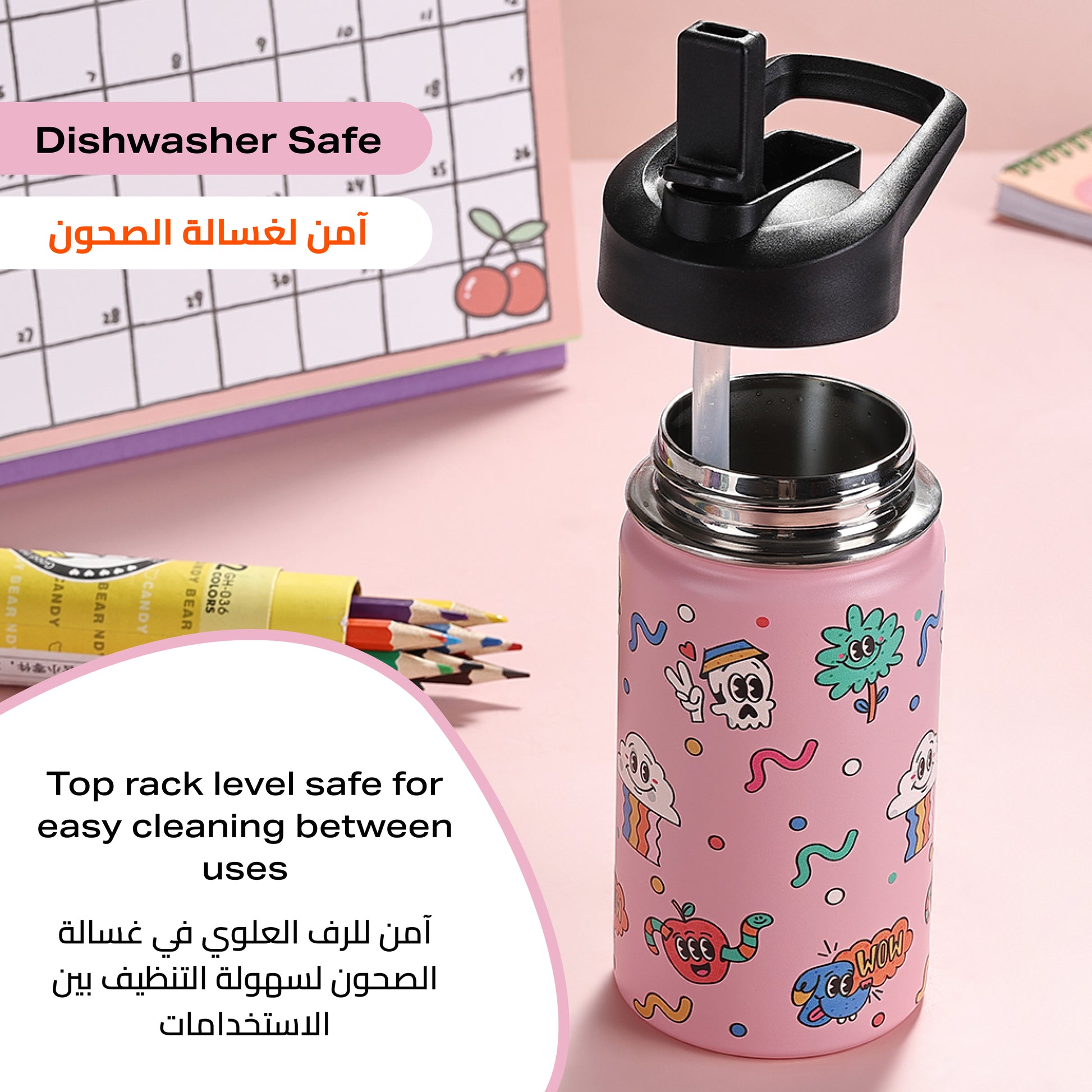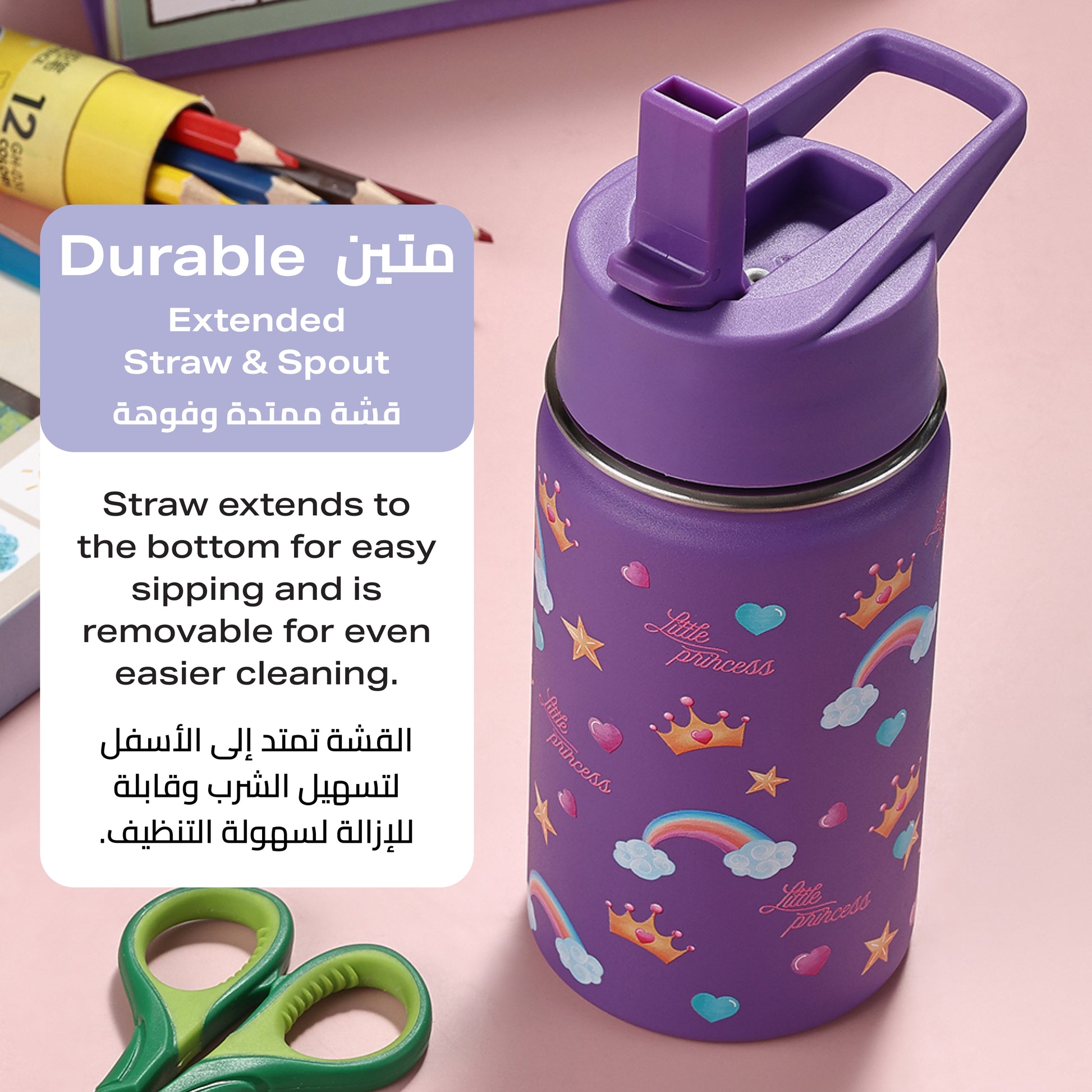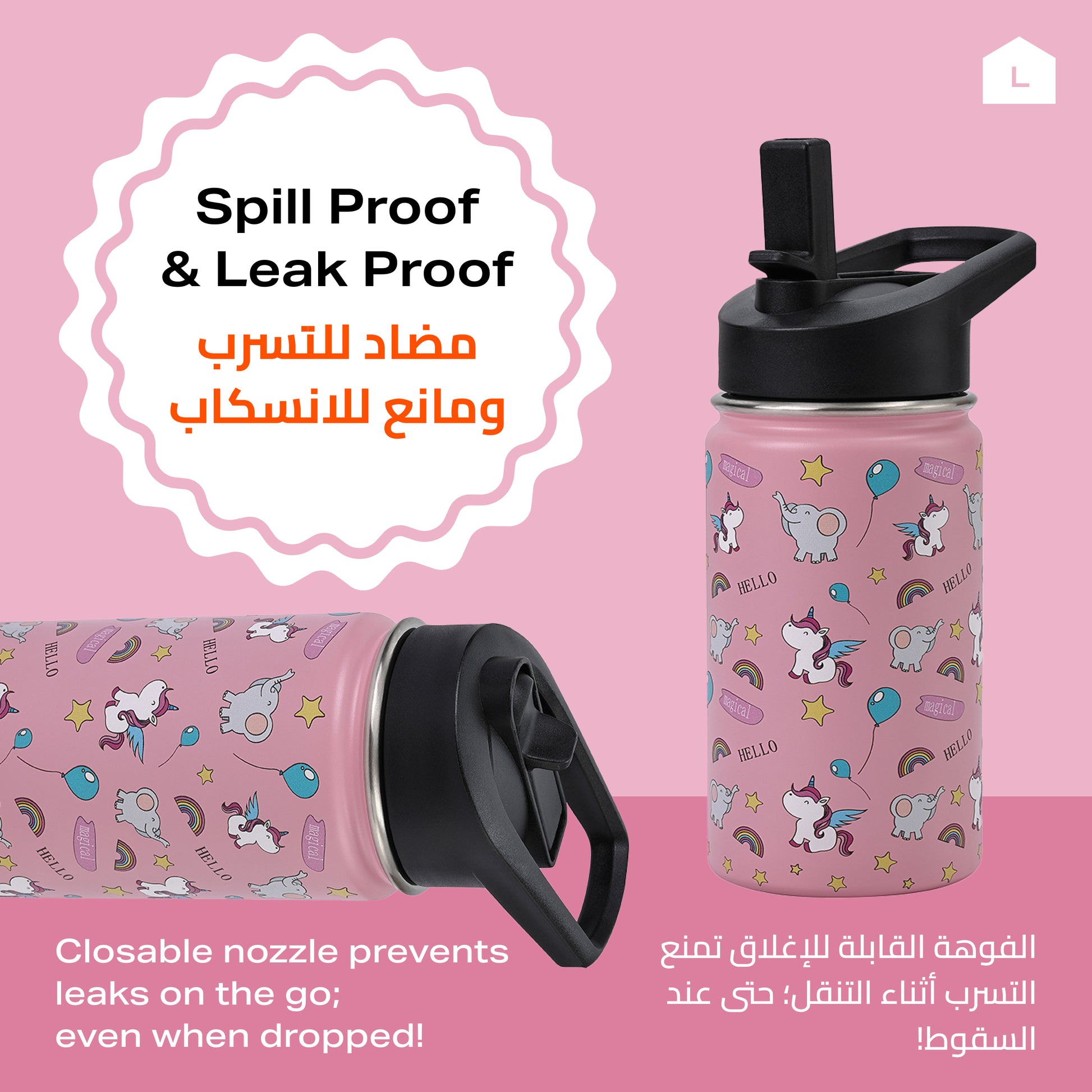 زجاجة مياه للأطفال من الستانلس ستيل - معزولة بسعة 350 مل للاستخدام اليومي في المدرسة والسفر