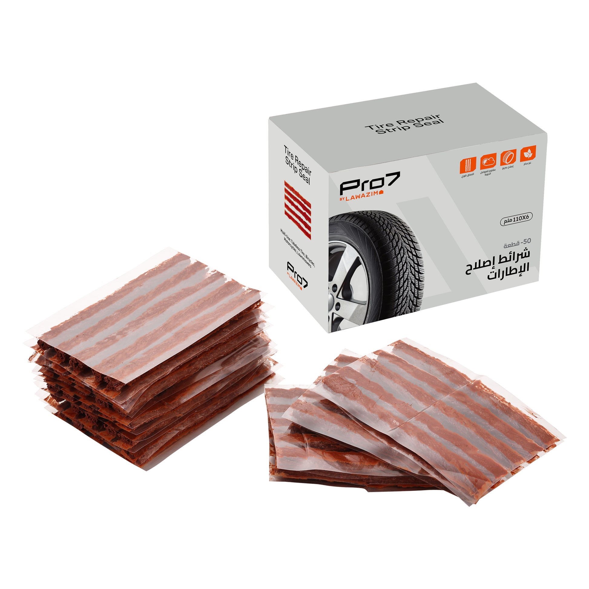 شريط إصلاح الإطارات - 110 × 6 مم - 50 قطعة من شرائط الختم المطاطية لإصلاح الإطارات بدون أنابيب لإصلاح الثقوب بسرعة