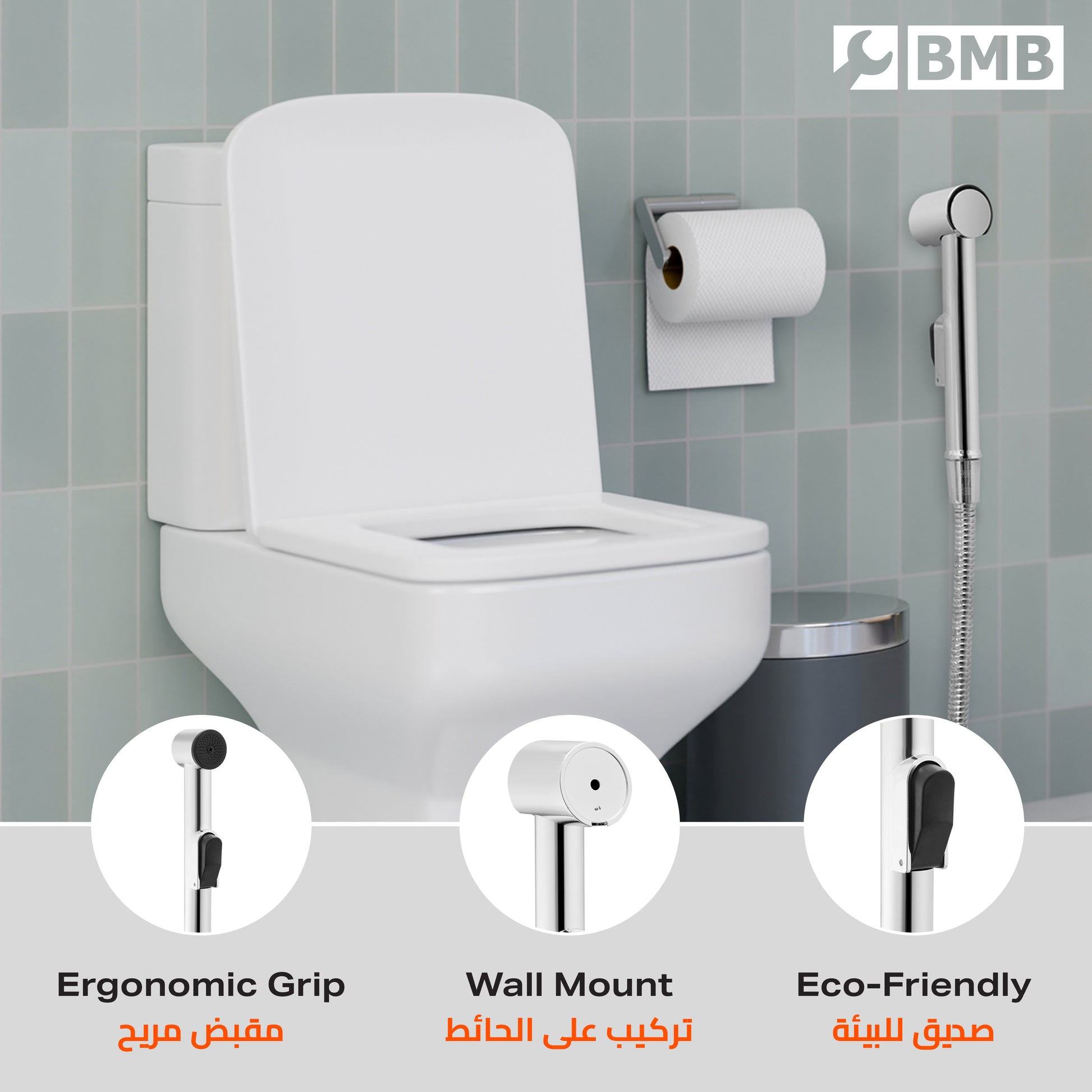 رشاش بيديه مع حامل - طقم 3 رشاشات يدوية فضية للحمام والنظافة الشخصية والتنظيف والغسيل