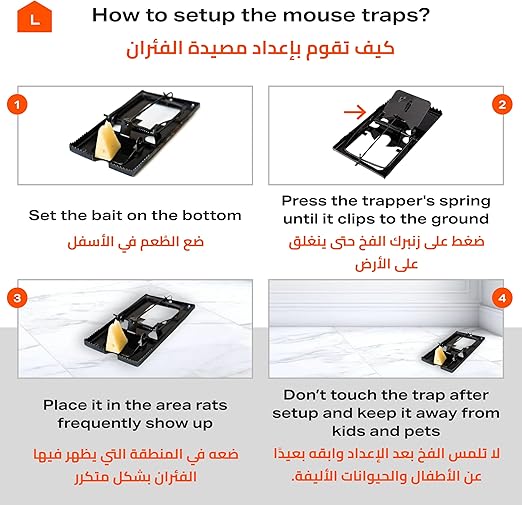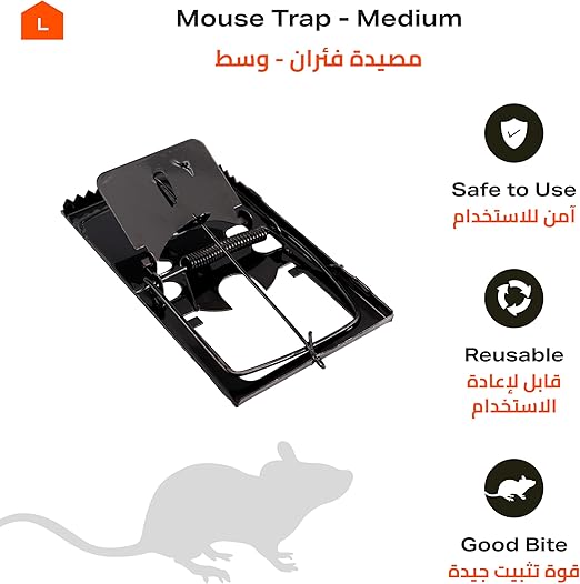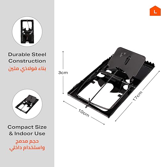Mouse Trap - 2 Piece Medium - Reusable Snap Steel Traps with Strong Spring - for Indoor and Outdoor Rodent Control