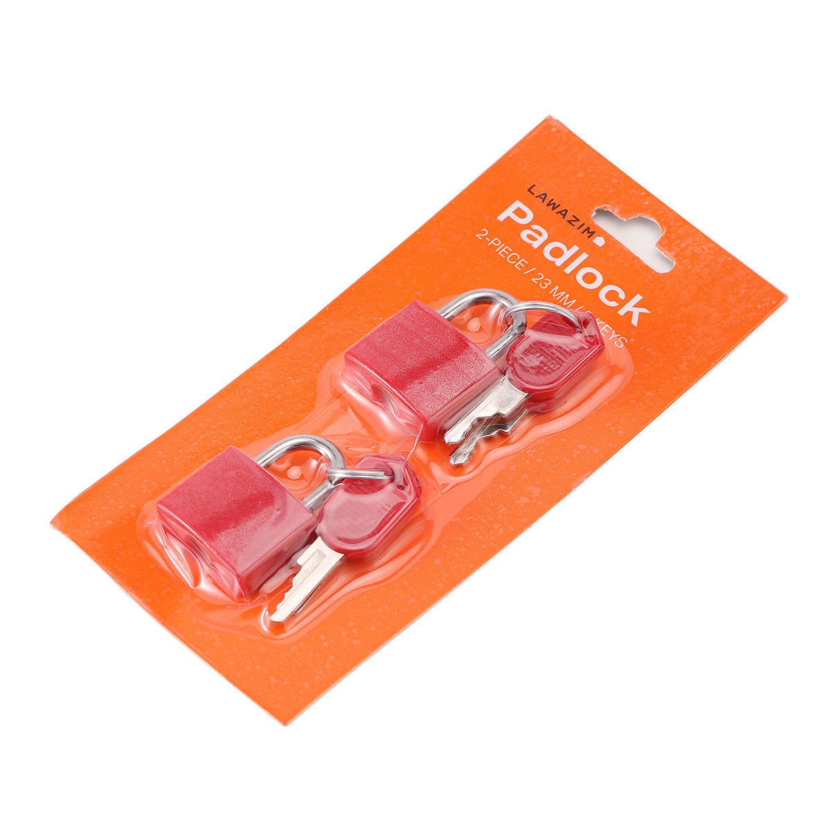 Padlock with Two Plastic Handle Keys Size - 2 Piece 23mm - Small Security Locks with Solid Body and Matching Keys for Luggage, Bags, Cabinets, and Travel
