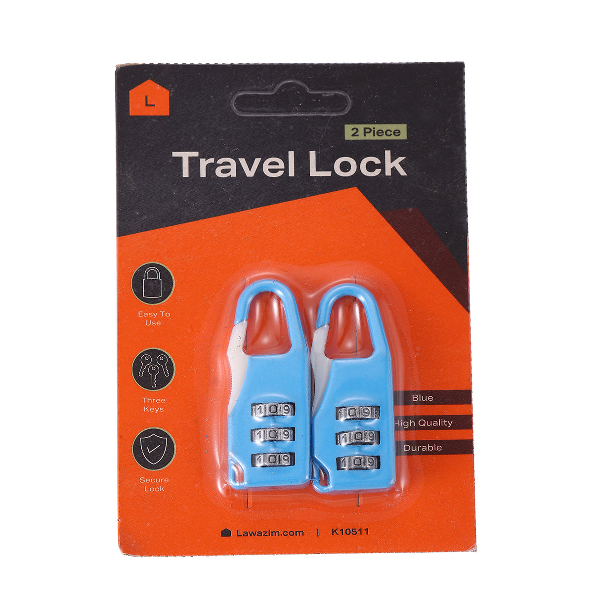 Travel Lock - 2 Piece Blue - 3 Digit Combination Padlock for Luggage, Suitcases, Backpacks, Lockers, Gym Bags, and Travel Security