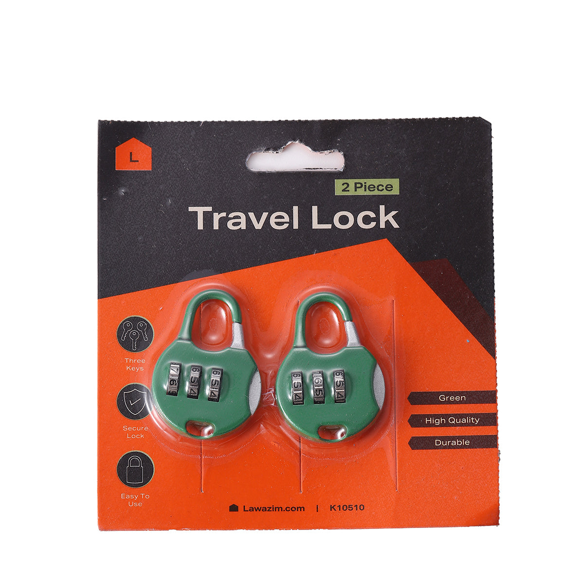 Travel Lock - 2 Piece Green - 3 Digit Combination Padlock for Luggage, Suitcases, Backpacks, Lockers, Gym Bags, and Travel Security