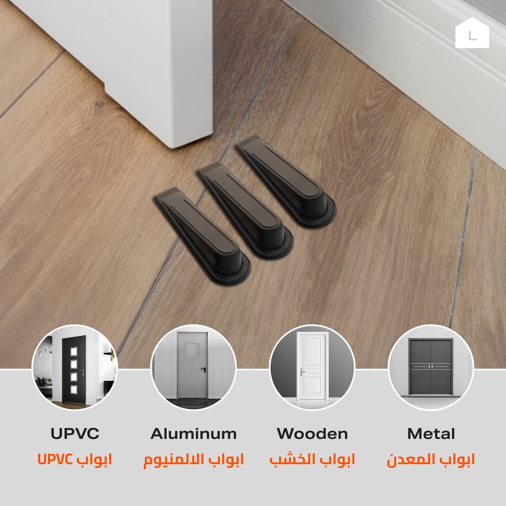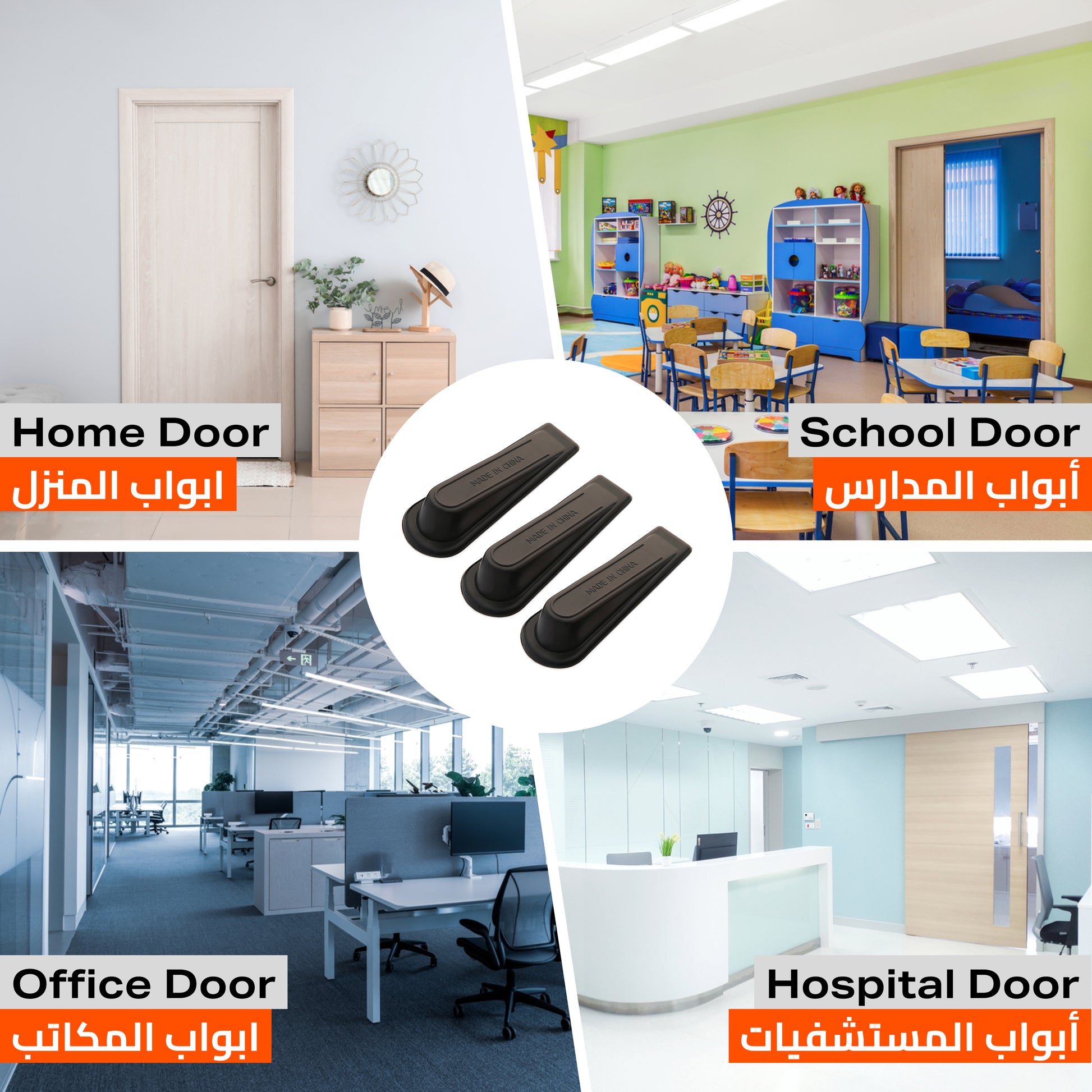 Rubber Door Stopper - 3 Piece - Non-Slip Wedge Design, Durable Floor Grip, Protects Walls & Doors, Easy to Use - for Home, Office, and Classroom
