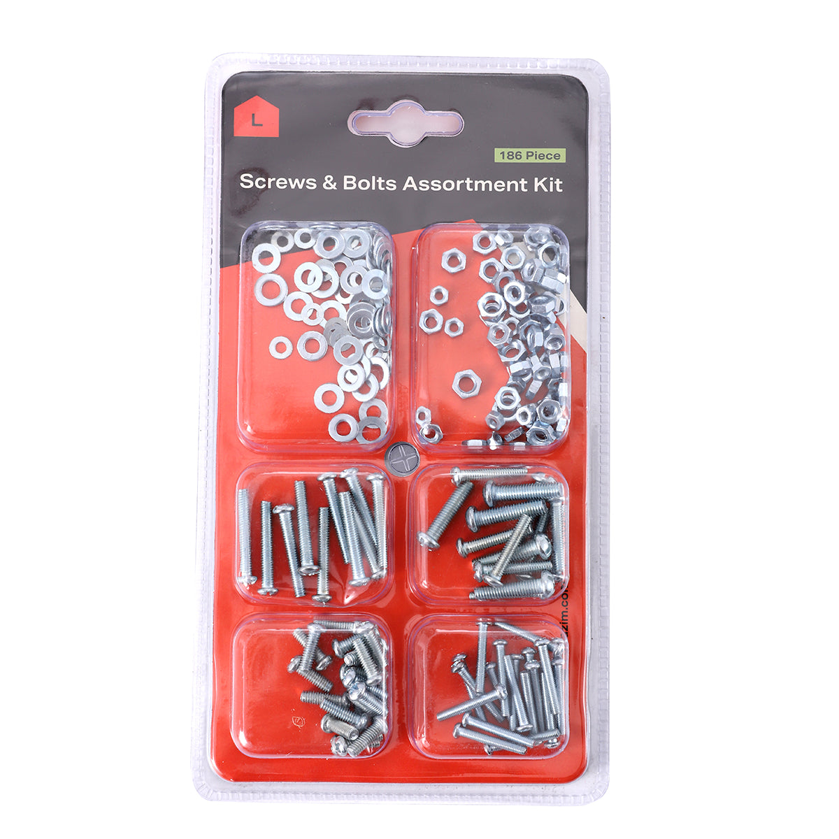 Machine Screws with Bolts Assortment Kit - 186 Piece Pan Head Philips Screws and Bolts for Home Improvement and Repair Projects