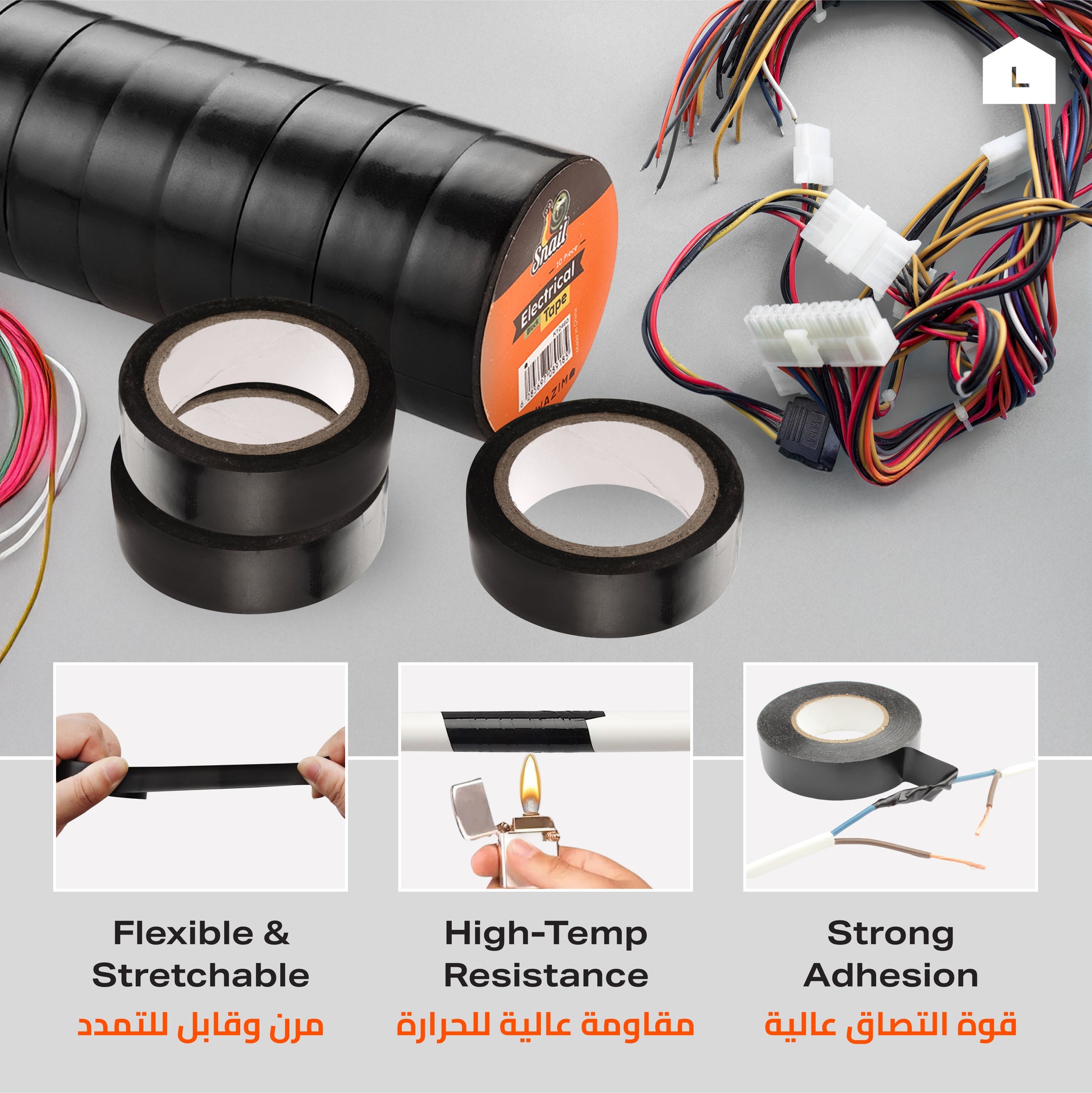 Snail Electrical Tape - 10 Piece Black Strong Adhesive Insulation Tape for Wiring, Repairs, Automotive, and DIY Use