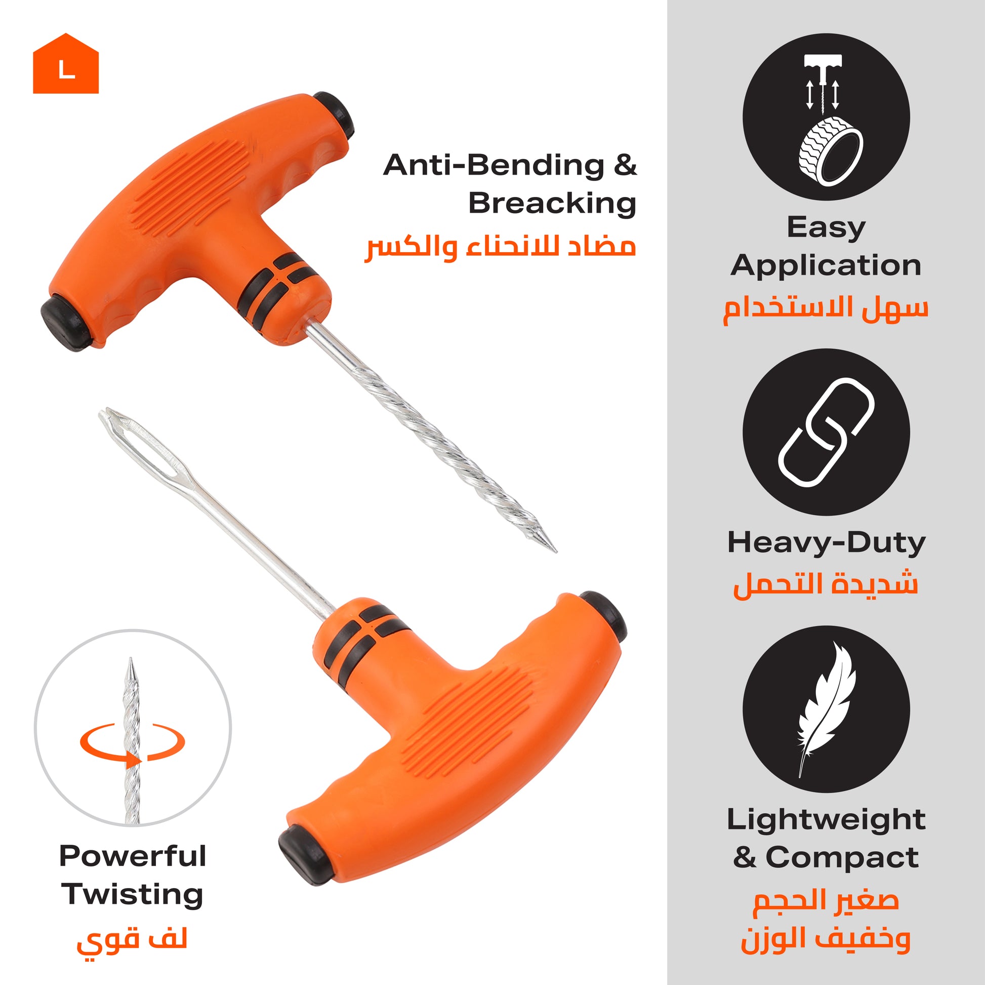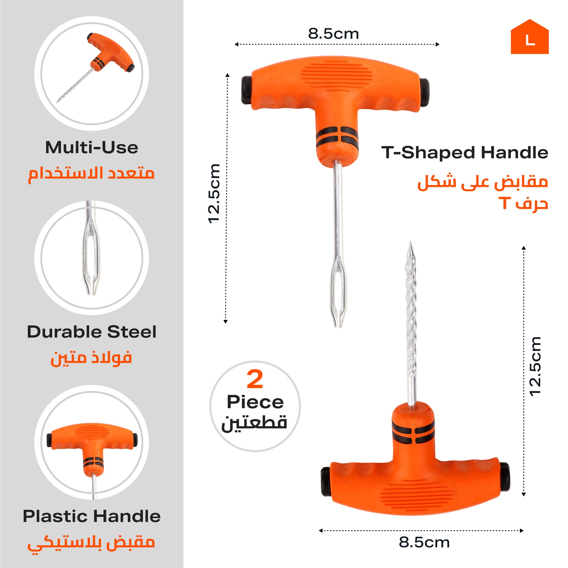 Plastic Handle Tire Plug Repair Tools - 2 Piece Orange - T-Handle Tire Repair Kit for Tubeless Tire Puncture Repair on Cars and Bikes