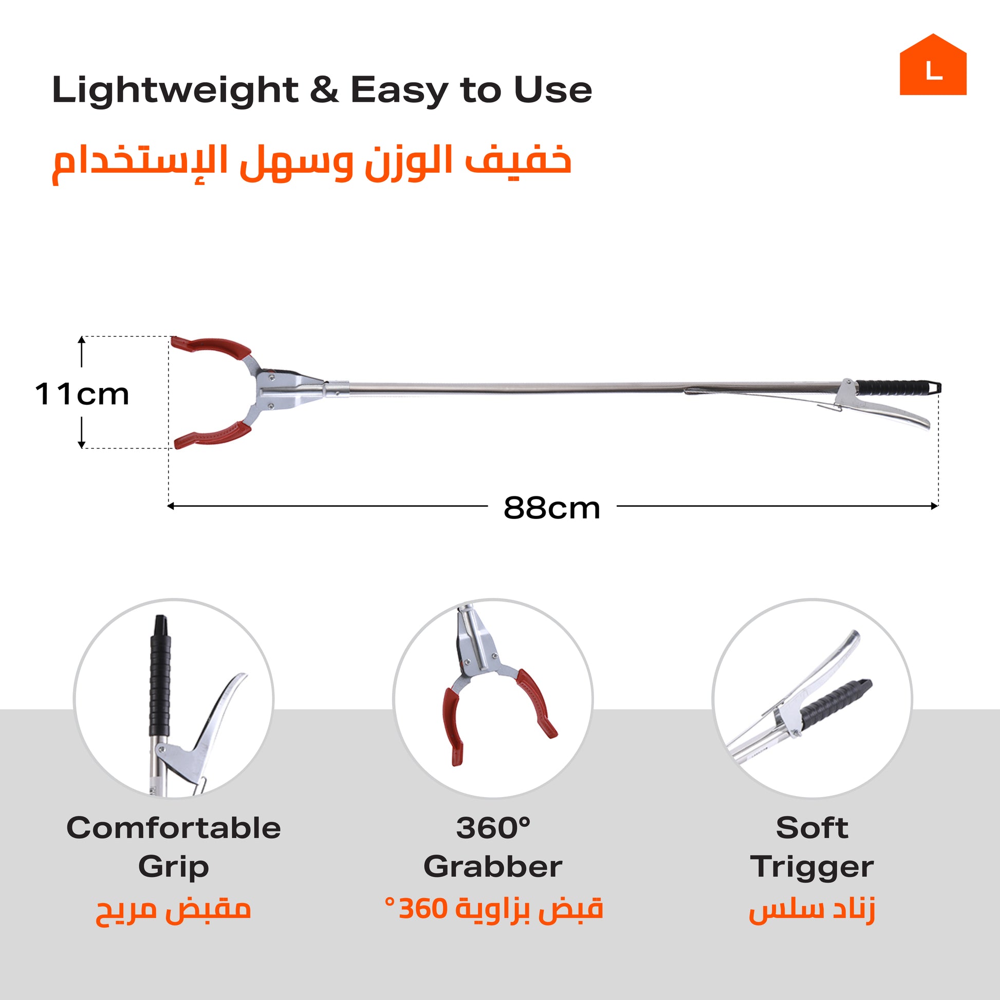 Tongs Grabber - 86cm - Long Reach Pickup Tool for Outdoor and Indoor Use in Home, Office, Workshop, and Garage
