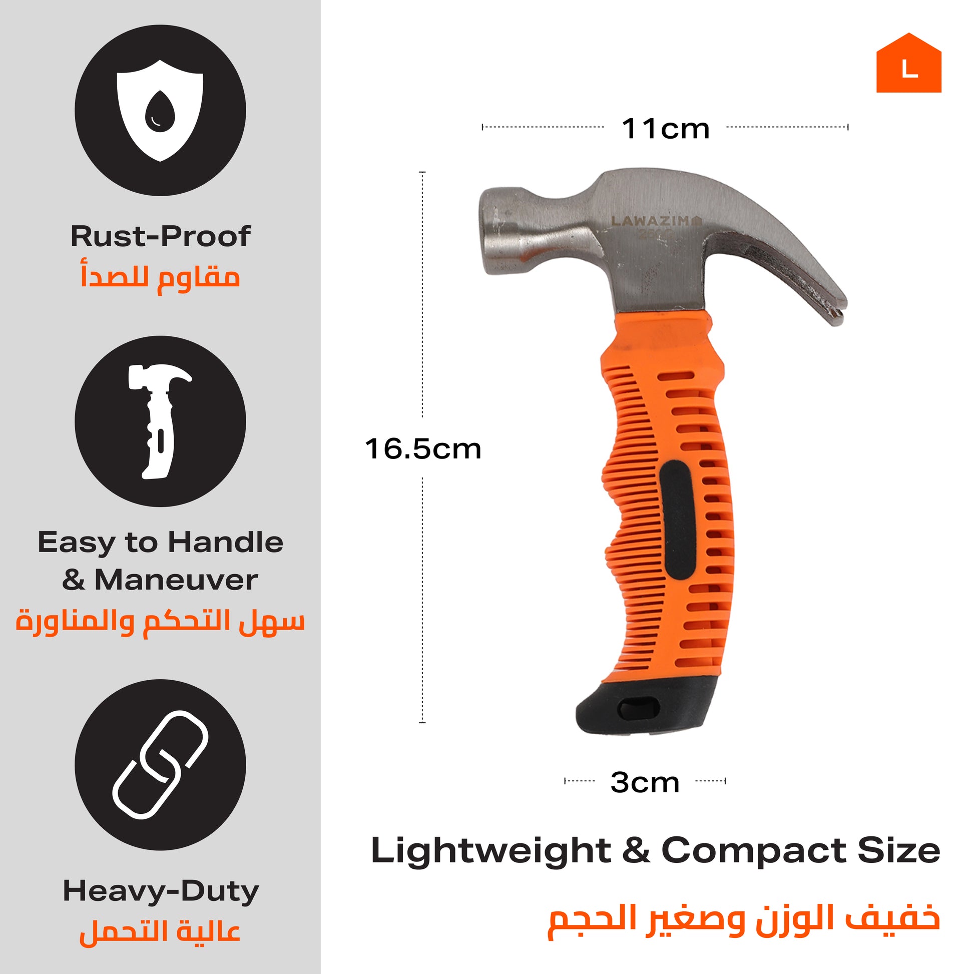 Mini Hammer - Straight Claw Hammer for Carpentry, Construction, DIY, Home Repairs, Upholstery, and Workshop Use
