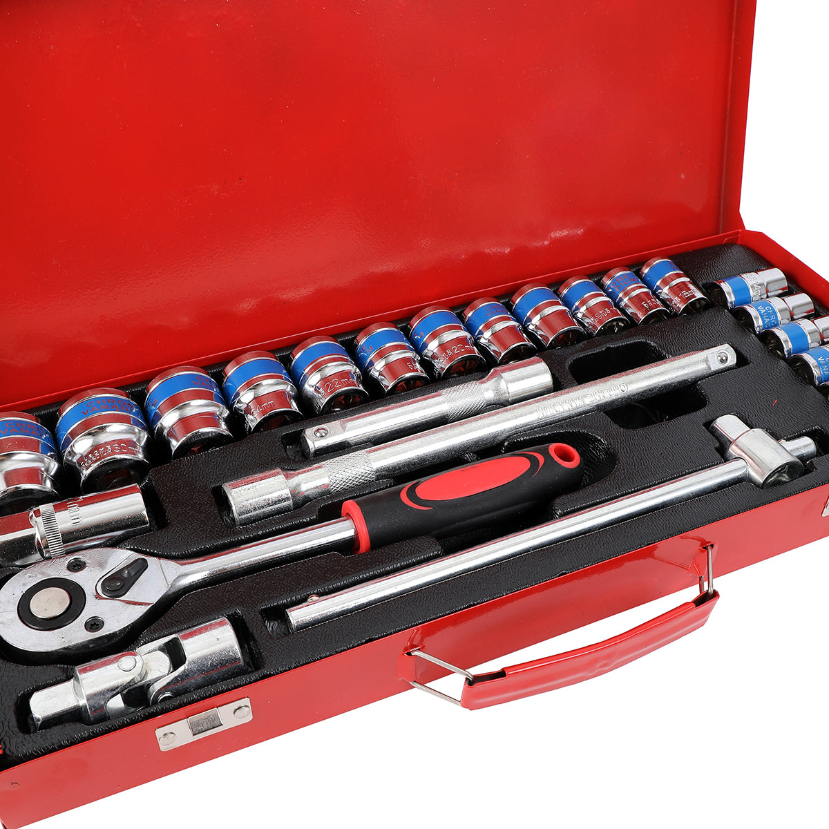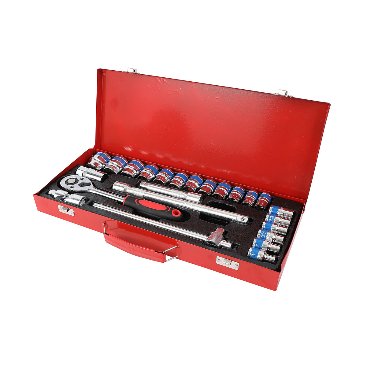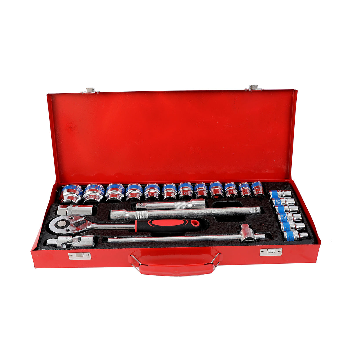 Ratchet Wrench Set with Red Iron Box -24 Piece- Chrome Vanadium Steel Socket Set for Automotive, Mechanical, and DIY Repair Tool