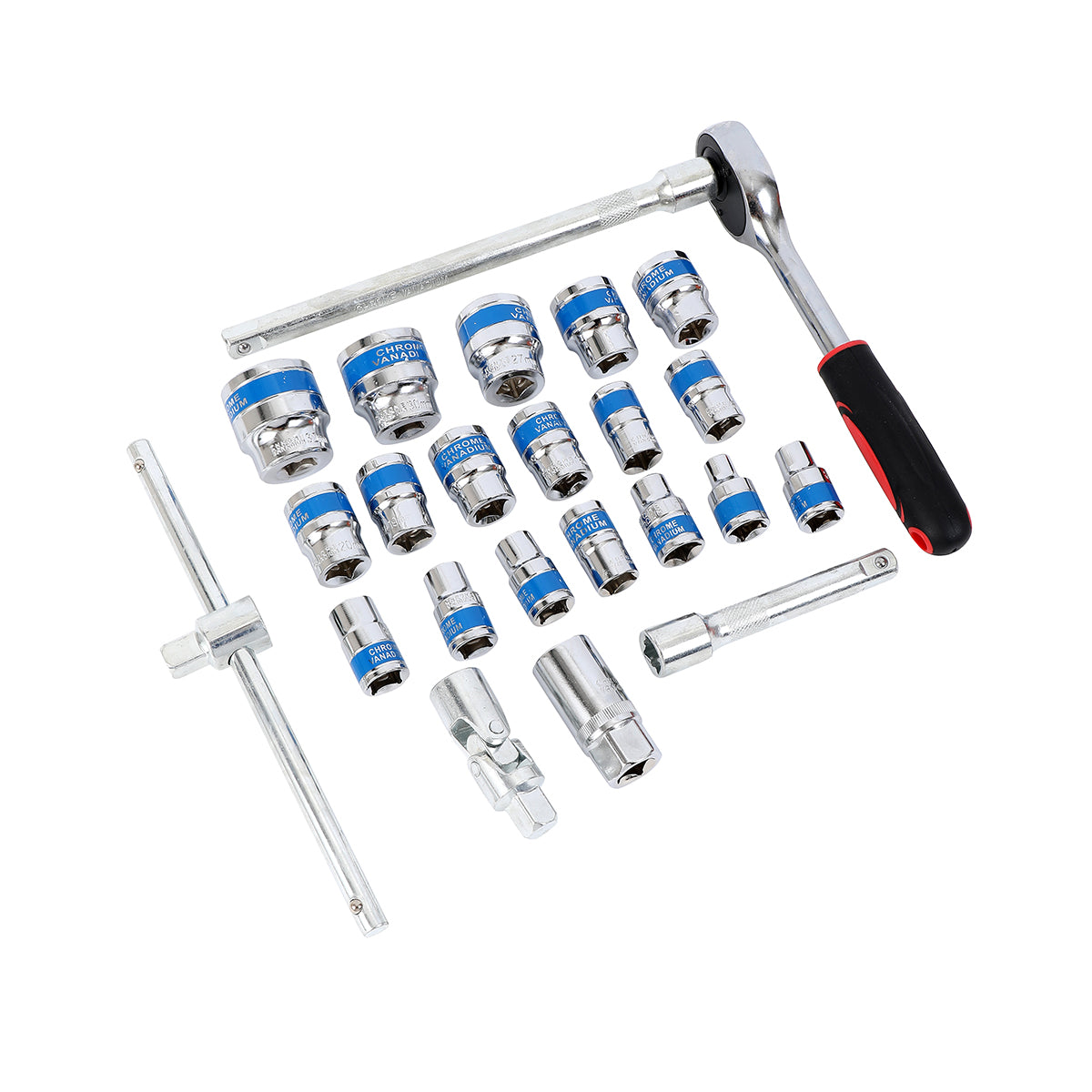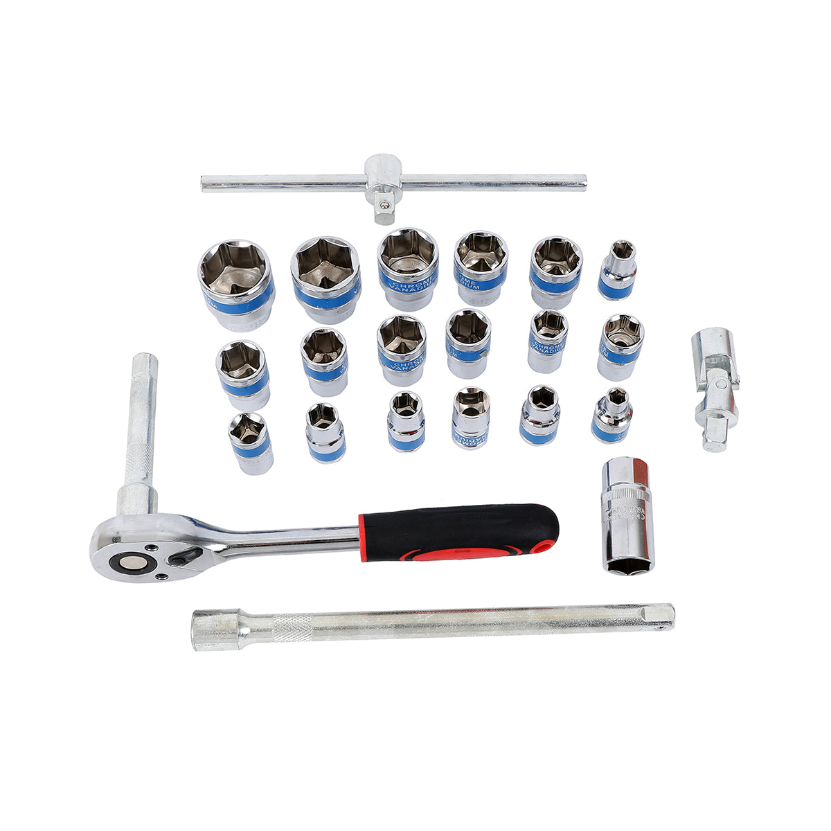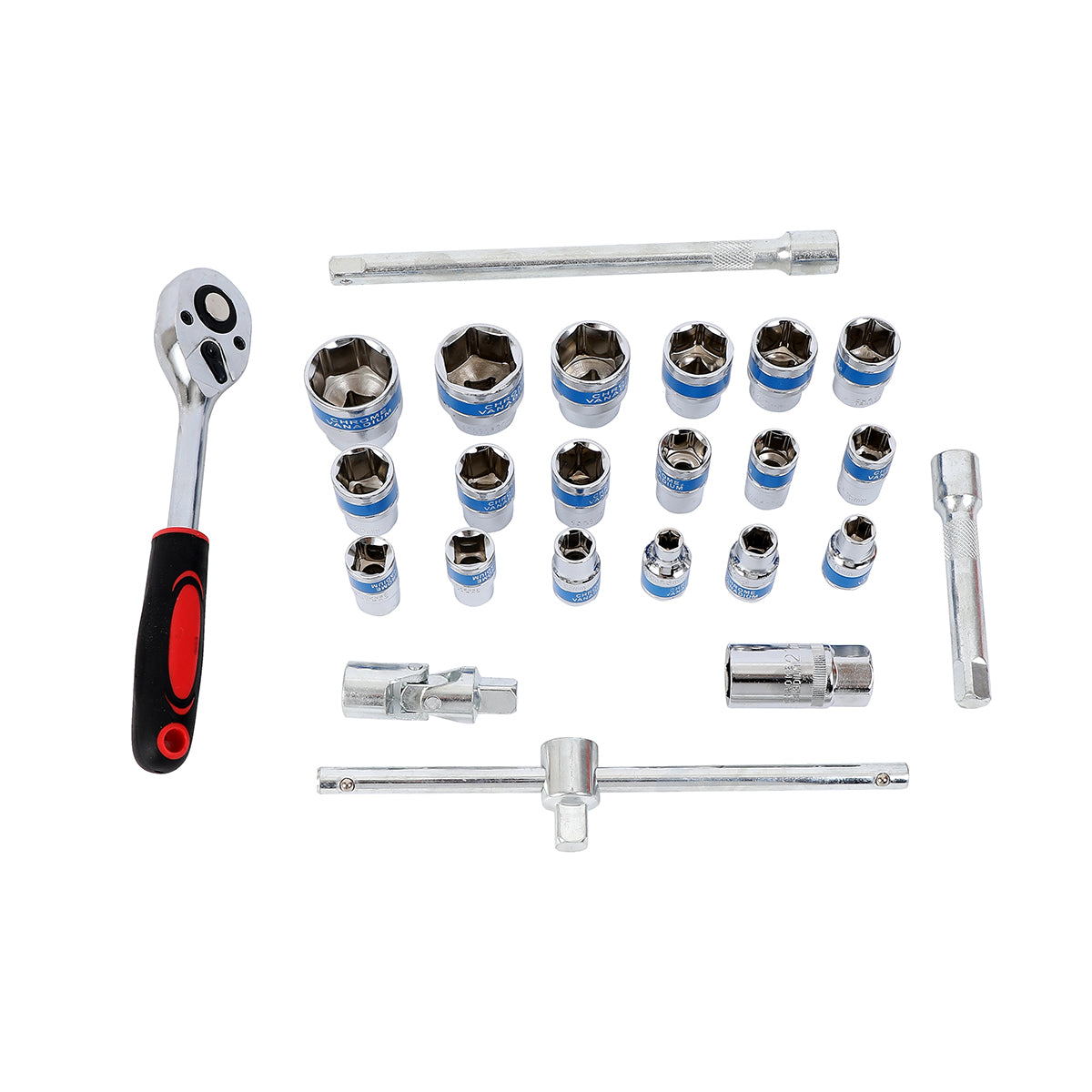 Ratchet Wrench Set with Red Iron Box -24 Piece- Chrome Vanadium Steel Socket Set for Automotive, Mechanical, and DIY Repair Tool