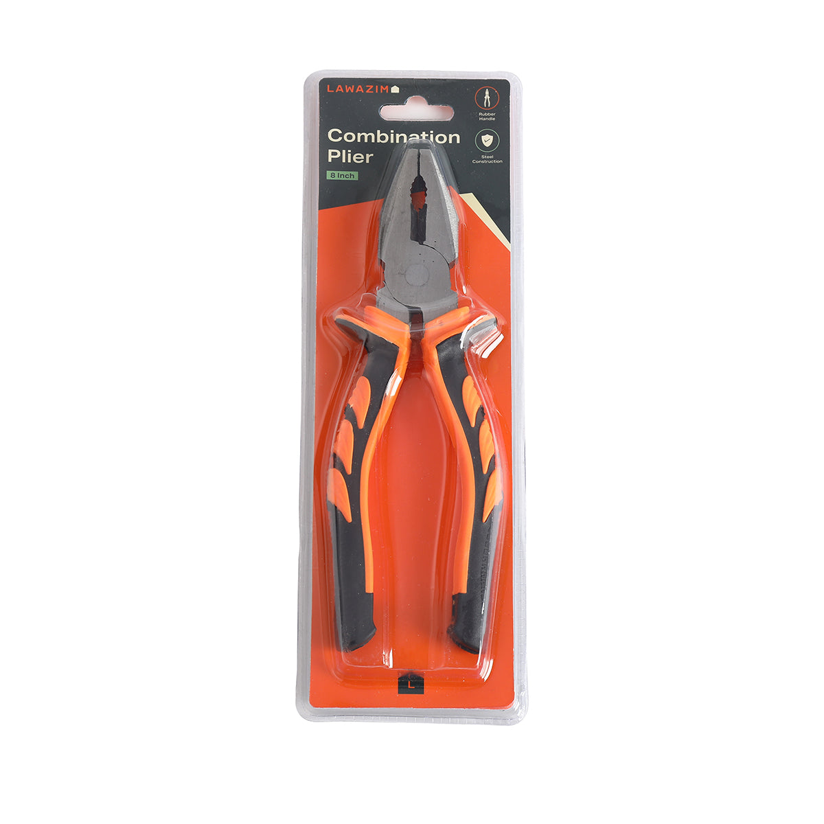 Rubber Handle Combination Plier - 8inch Orange and Black - Lineman Plier for Electrical Work, Construction, and Household Repairs