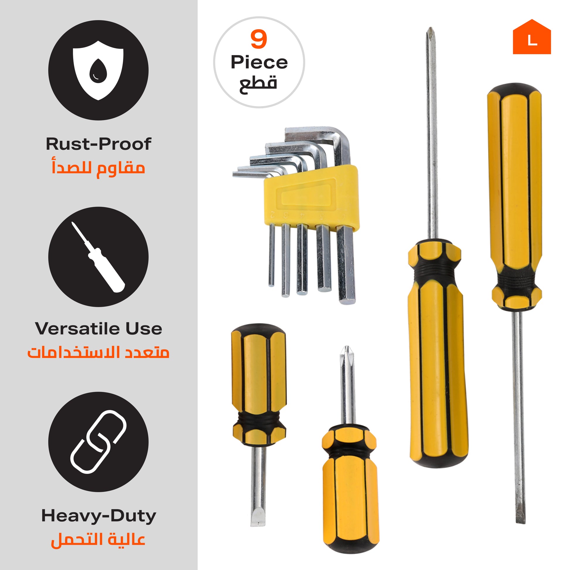 Screwdriver Set 9 Piece - Phillips, Flathead, and Hex Screwdrivers for Household Repairs, DIY, and Electrical Work