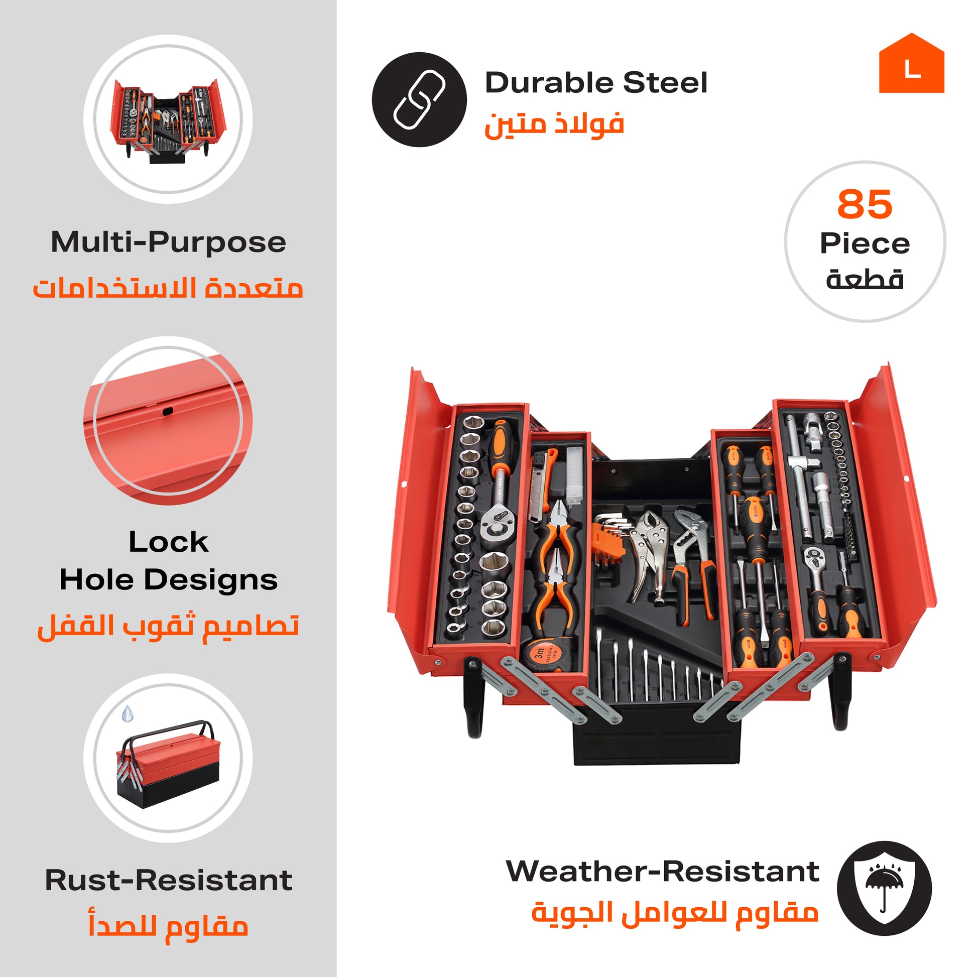 Tools Box 85 Piece - Comprehensive Tool Set for Automotive, DIY, and Household Repairs