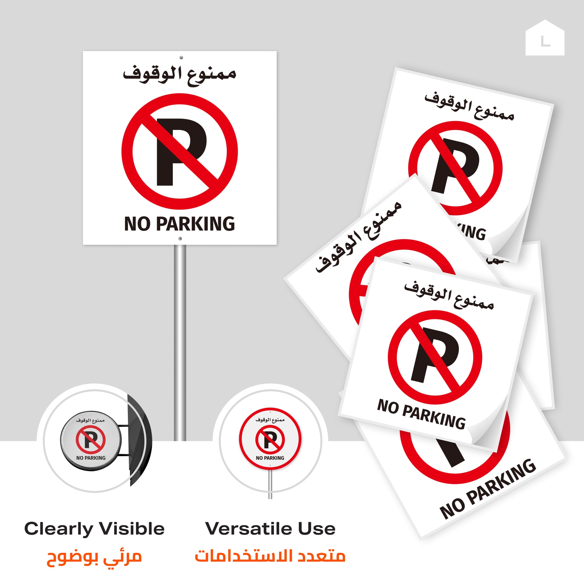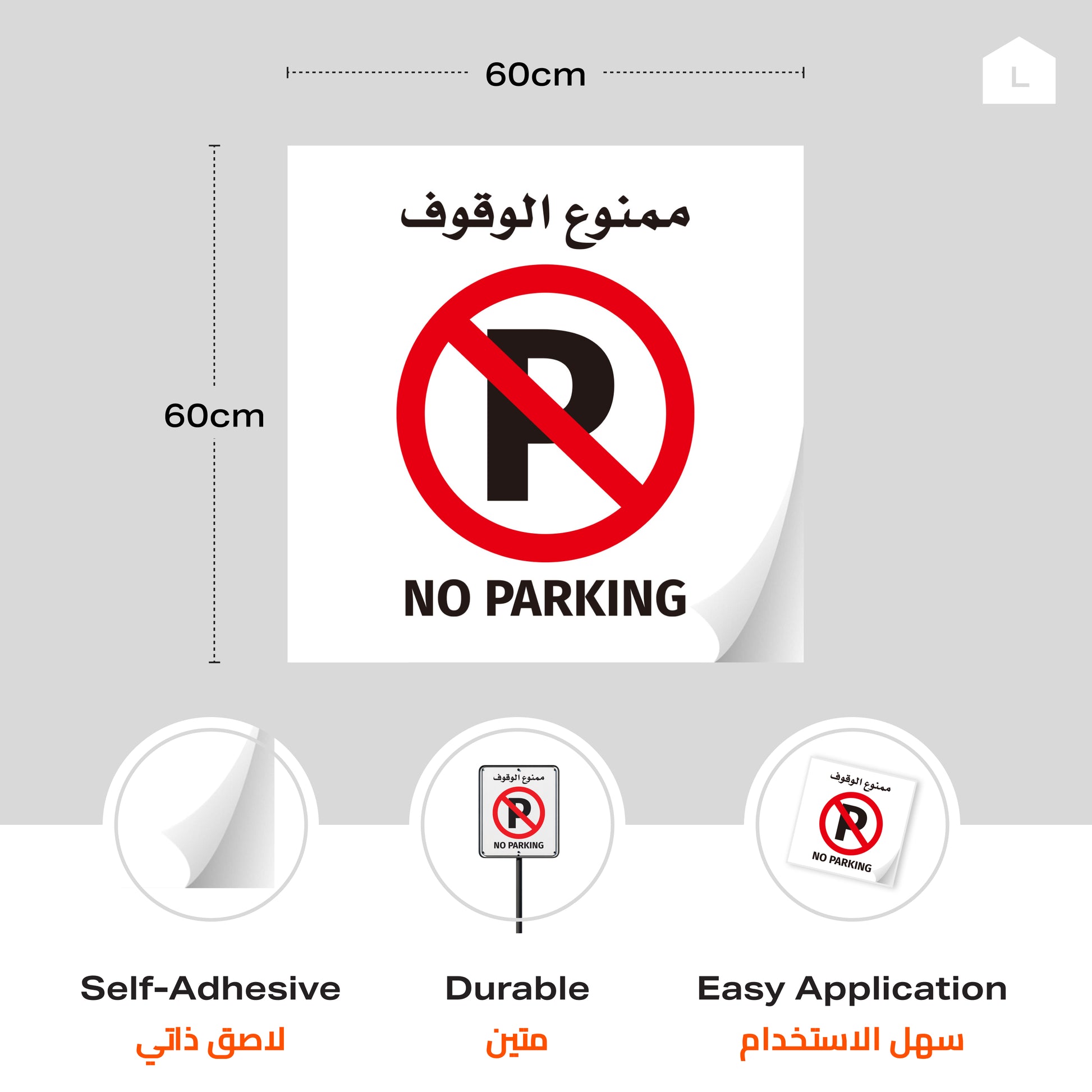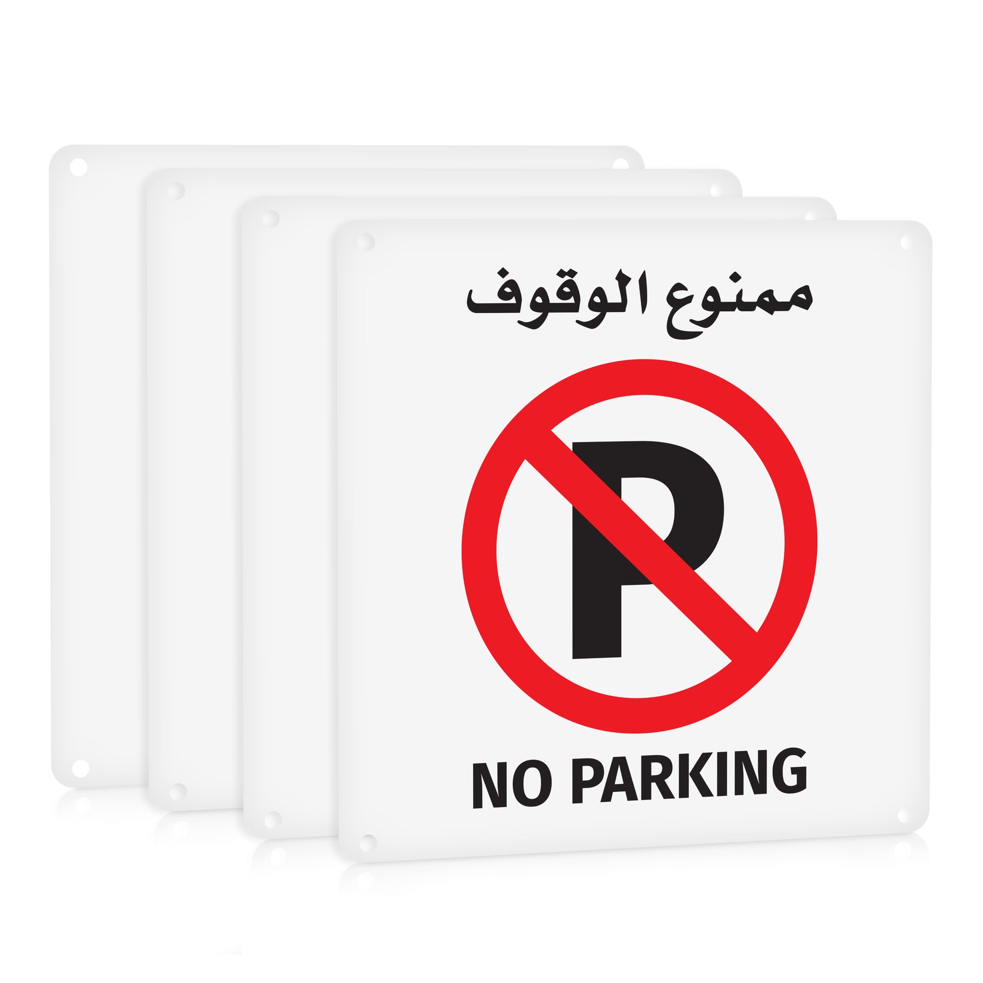 No Parking Sign Sticker - 4 Piece 60x60cm - Self Adhesive Vinyl Sticker for Parking Lots, Business Areas, and Driveways