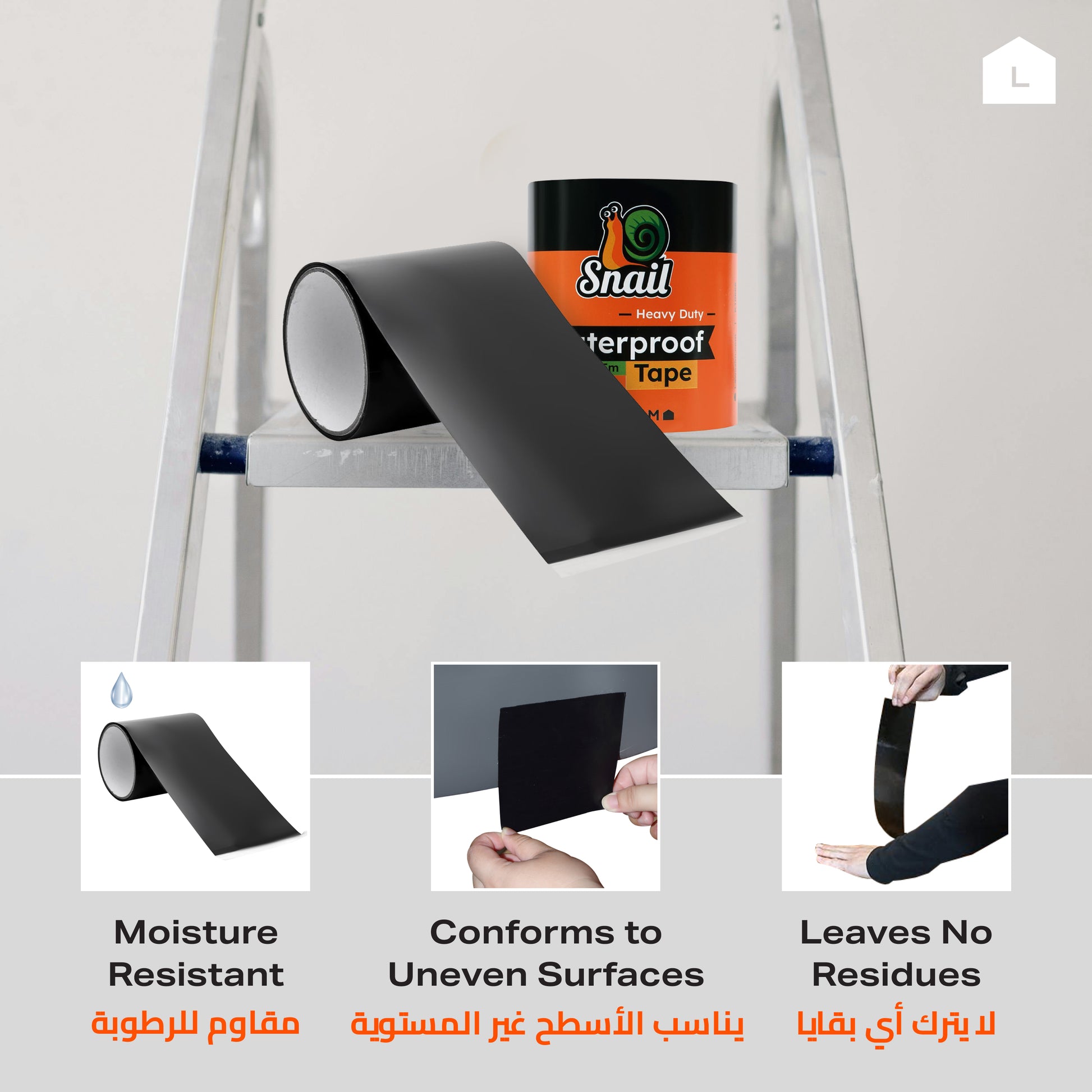 Snail Heavy Duty Waterproof Tape - Set of 3 Black Utility Tape for Indoor & Outdoor Use