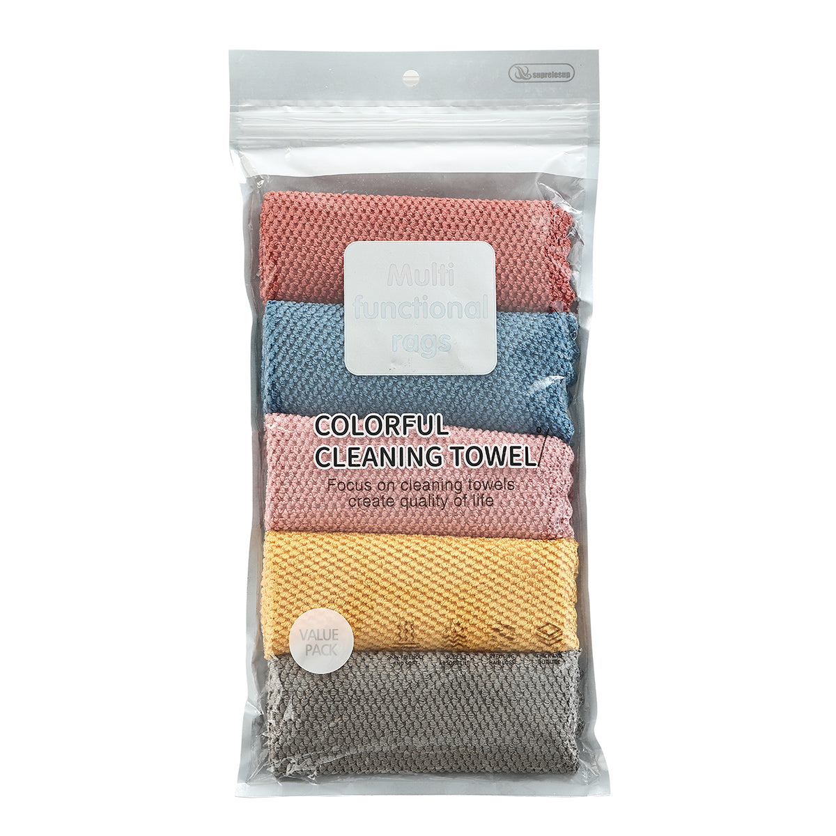 5 Piece Cleaning Towel - 30x30cm - Microfiber Towels for Kitchen, Car, Glass, and Multi-Surface Cleaning - Multi-Color