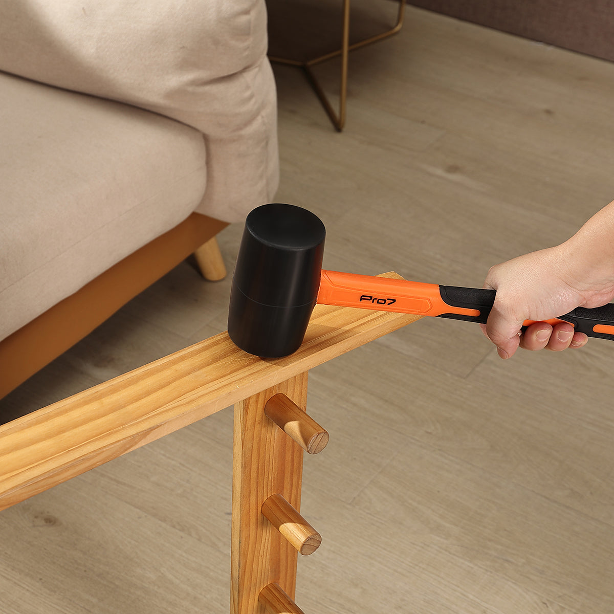 Rubber Mallet with Fiber Handle - Non-Marring Soft Face Hammer for Flooring, Tile Installation, Woodworking, DIY, and Camping