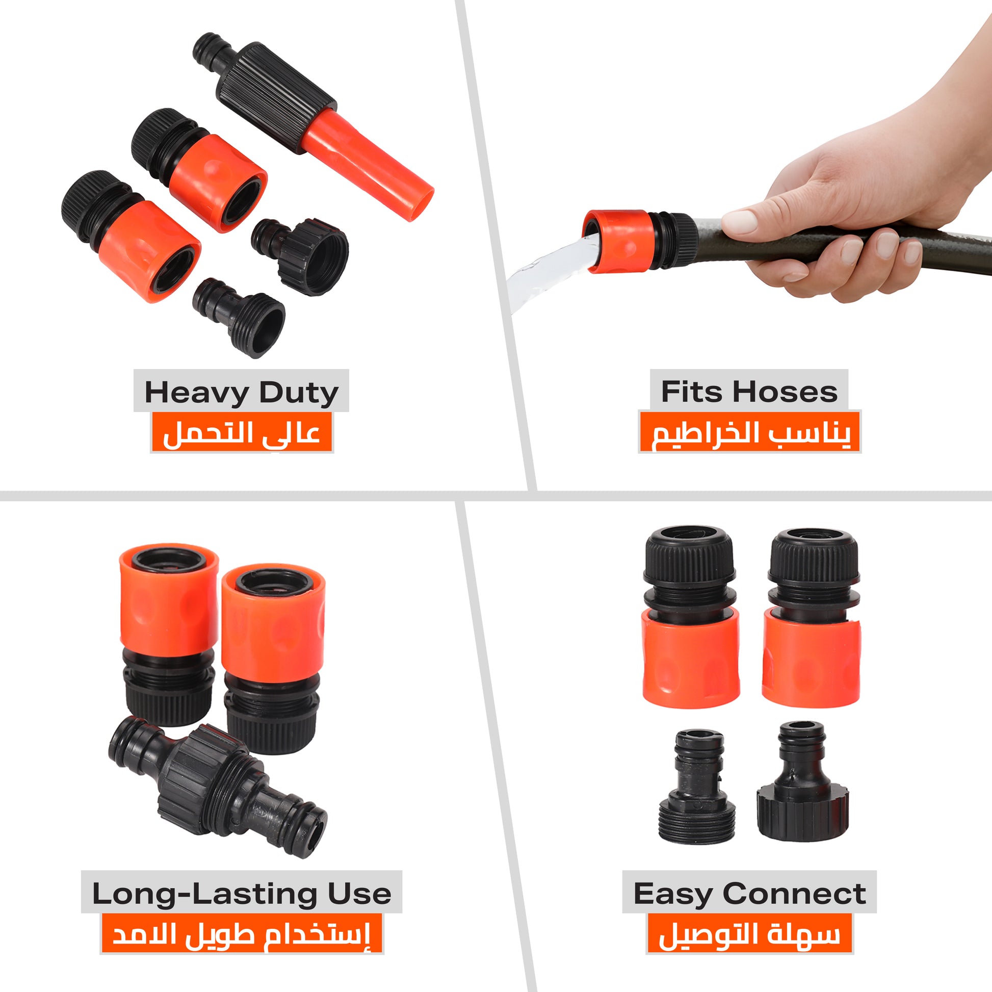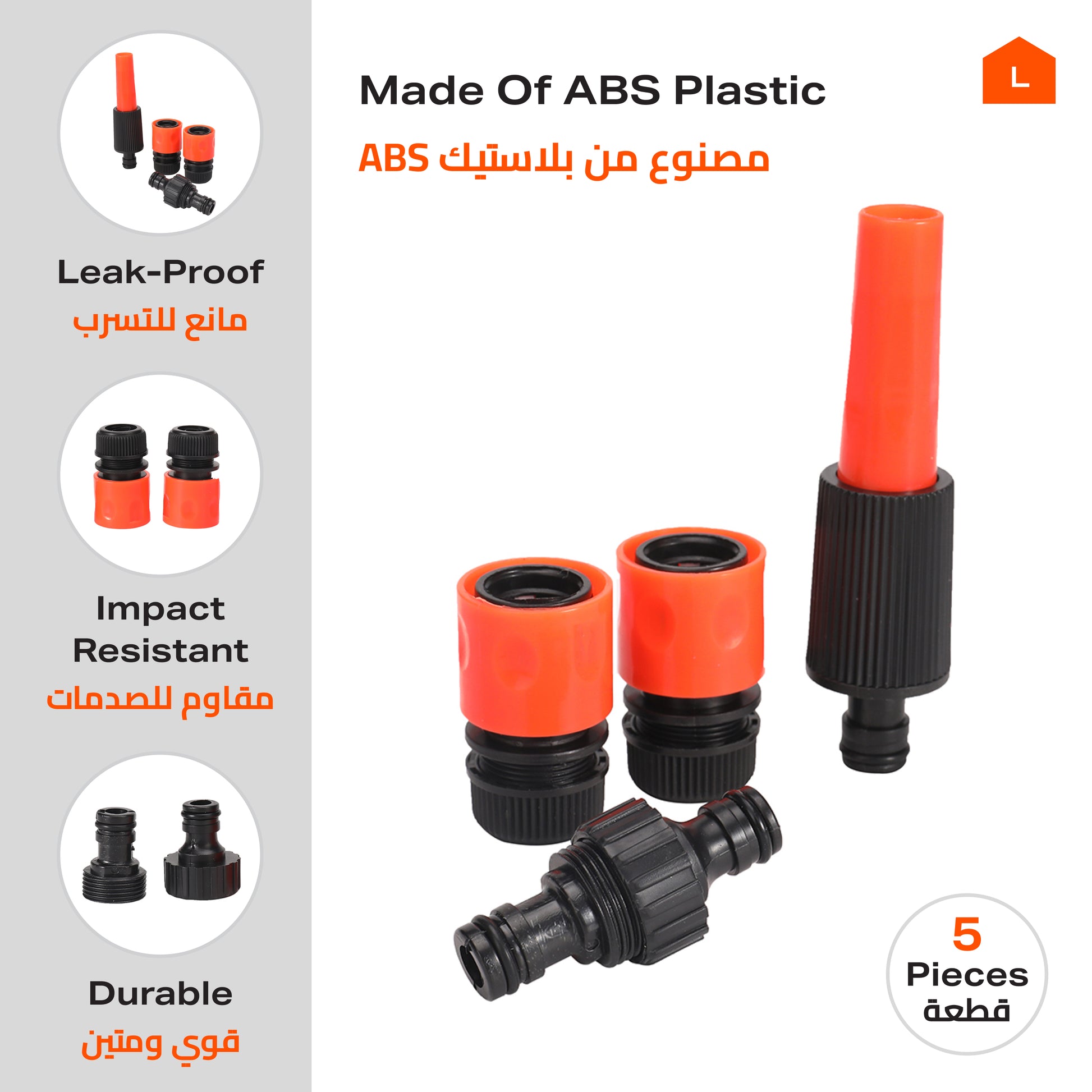 Garden Quick Connector Set - 5 Pieces - with ABS Construction, Leak-Resistant Design - Ideal for Hoses, Taps, Nozzles, and Watering Systems