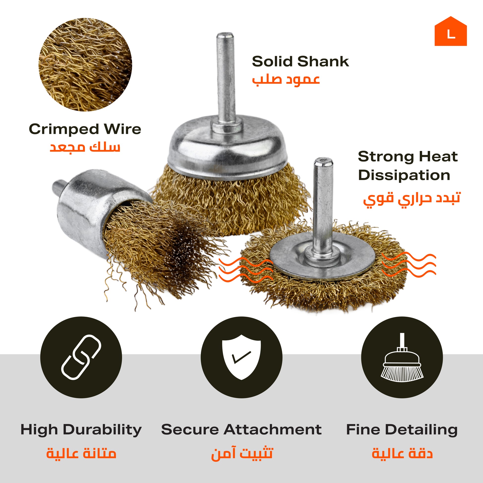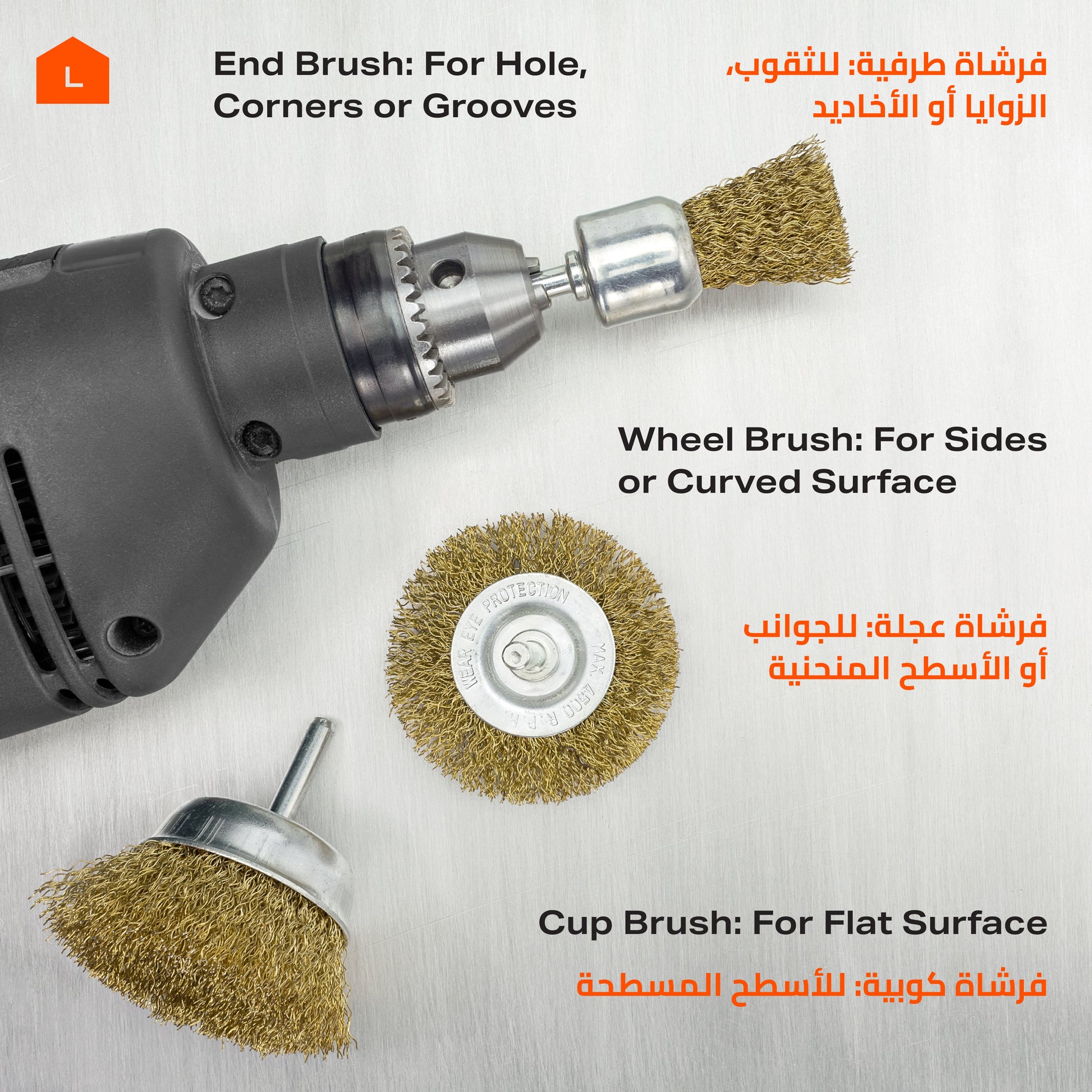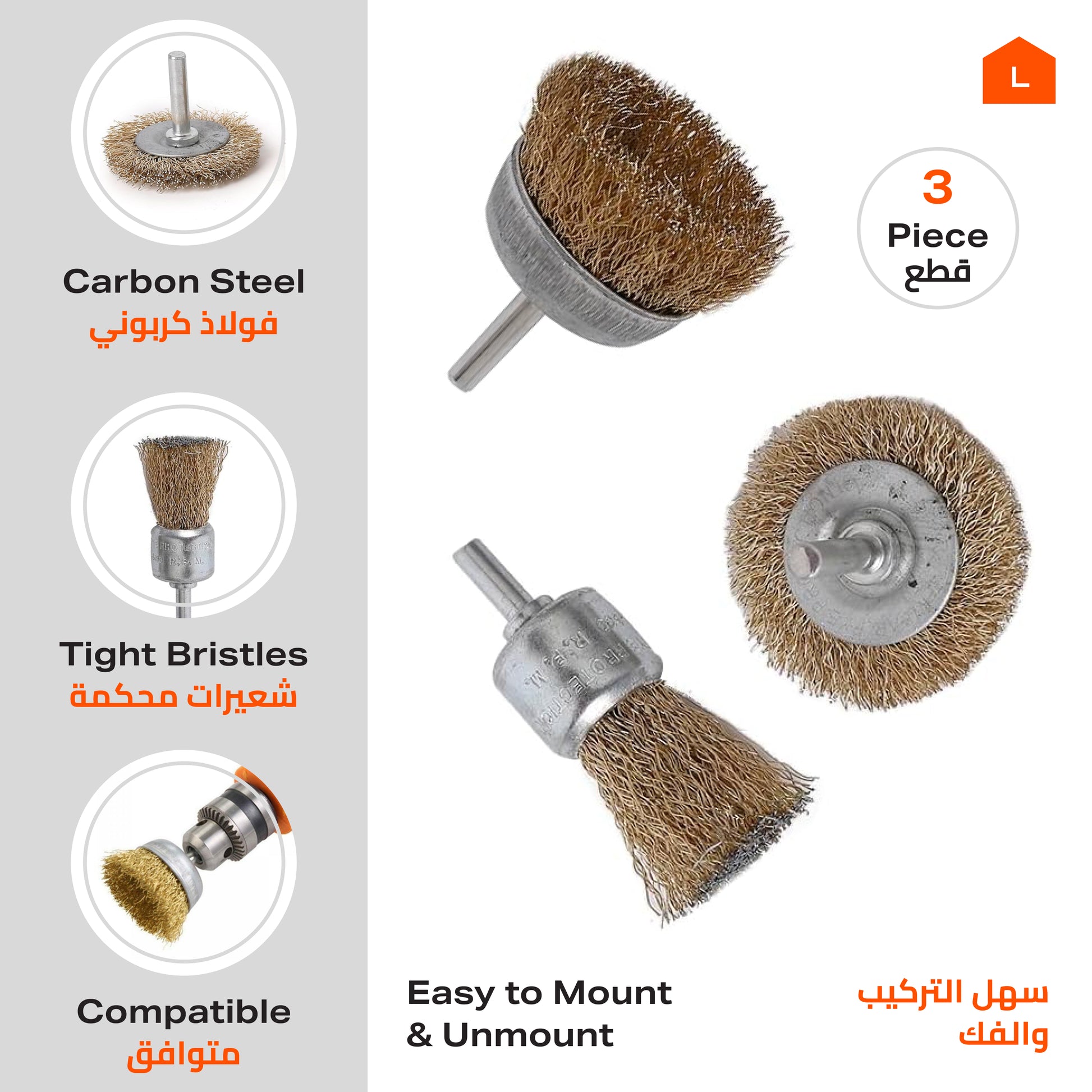 3-Piece Wire Brush Set - Wheel, Cup, and End Brush for Metal, Wood & Plastic Cleaning and Surface Prep