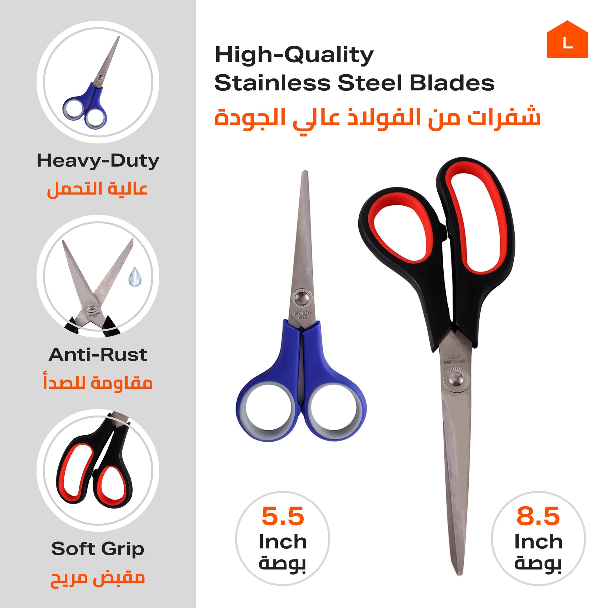 Scissor - 2 Piece 8.5inch and 5.5inch - Multipurpose Household and Office Scissors with Sharp Blades - for Paper, Fabric, and Craft Cutting