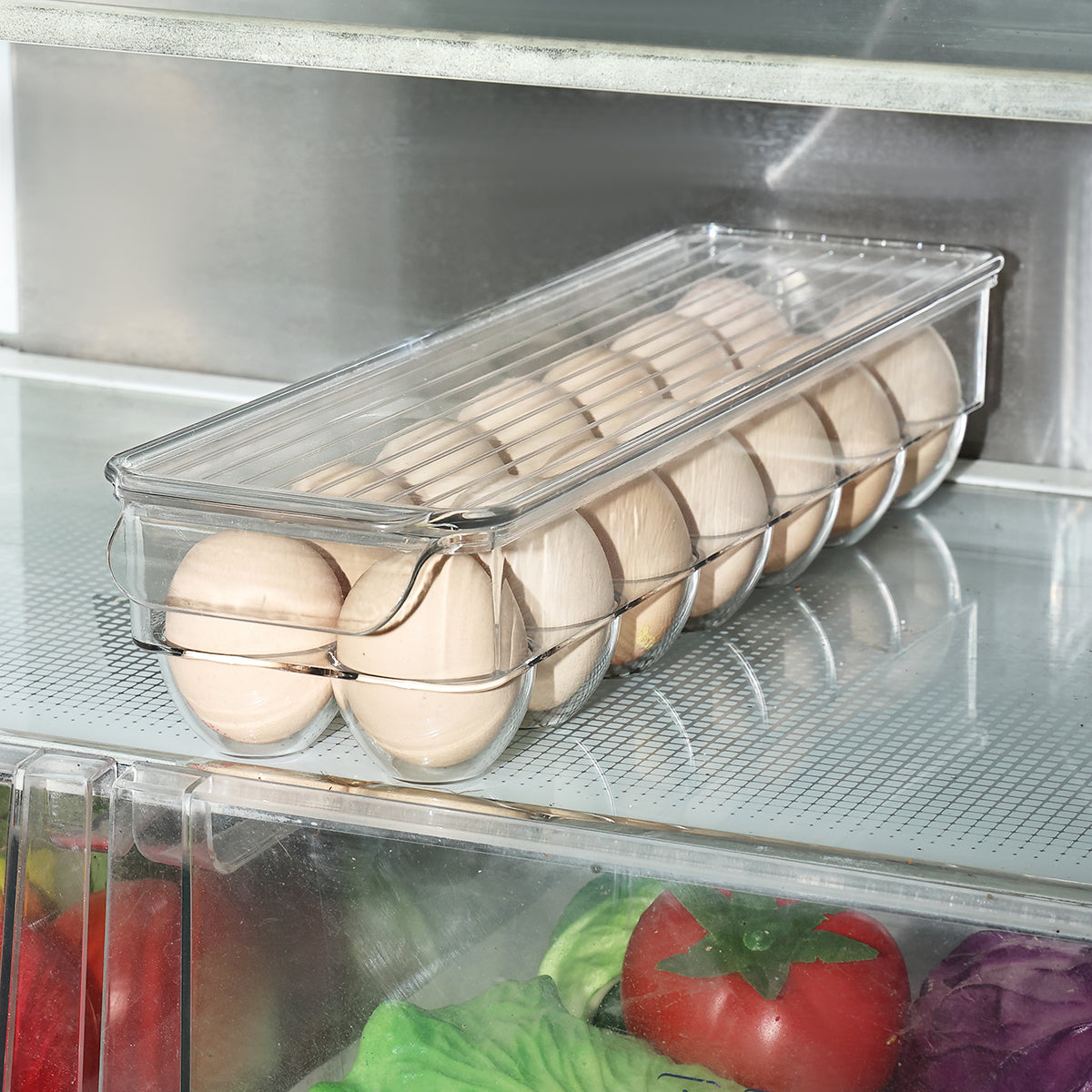 Egg Holder for Fridge - Clear Plastic Egg Storage Container for Refrigerator Organization, Meal Prep, and Small Kitchens