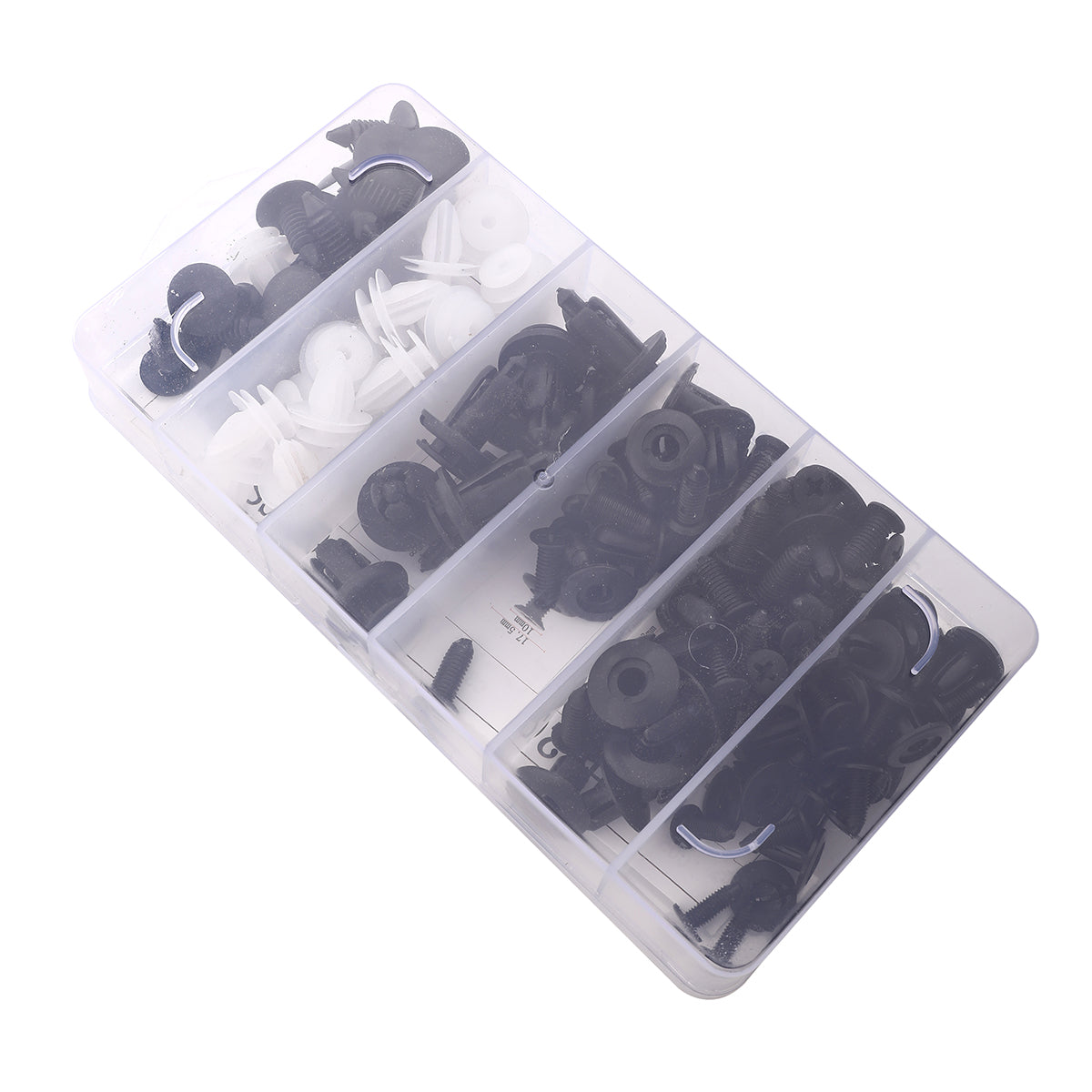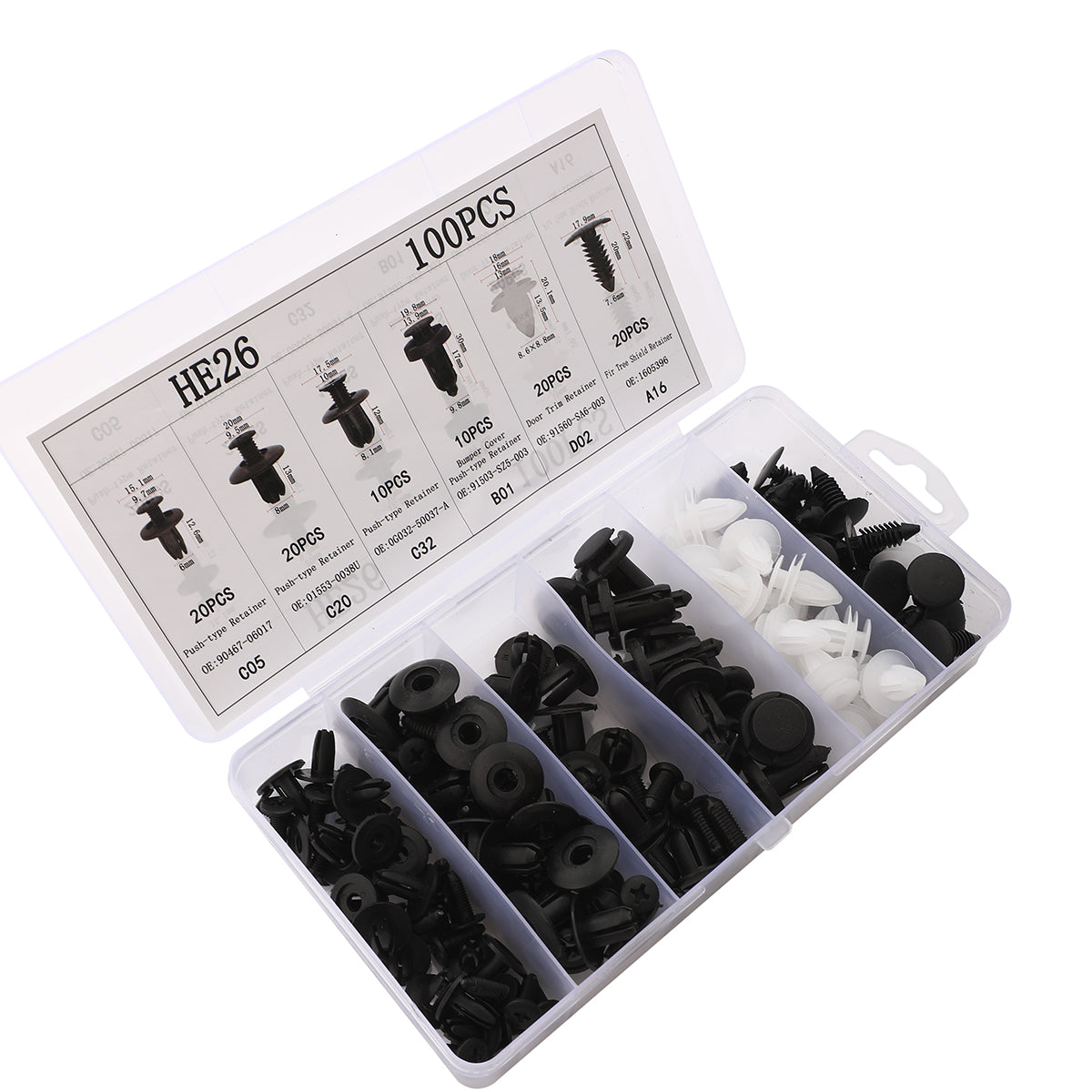 🔩 [Complete Kit] Includes 100 assorted fasteners in six popular sizes for all-around car maintenance and detailing.