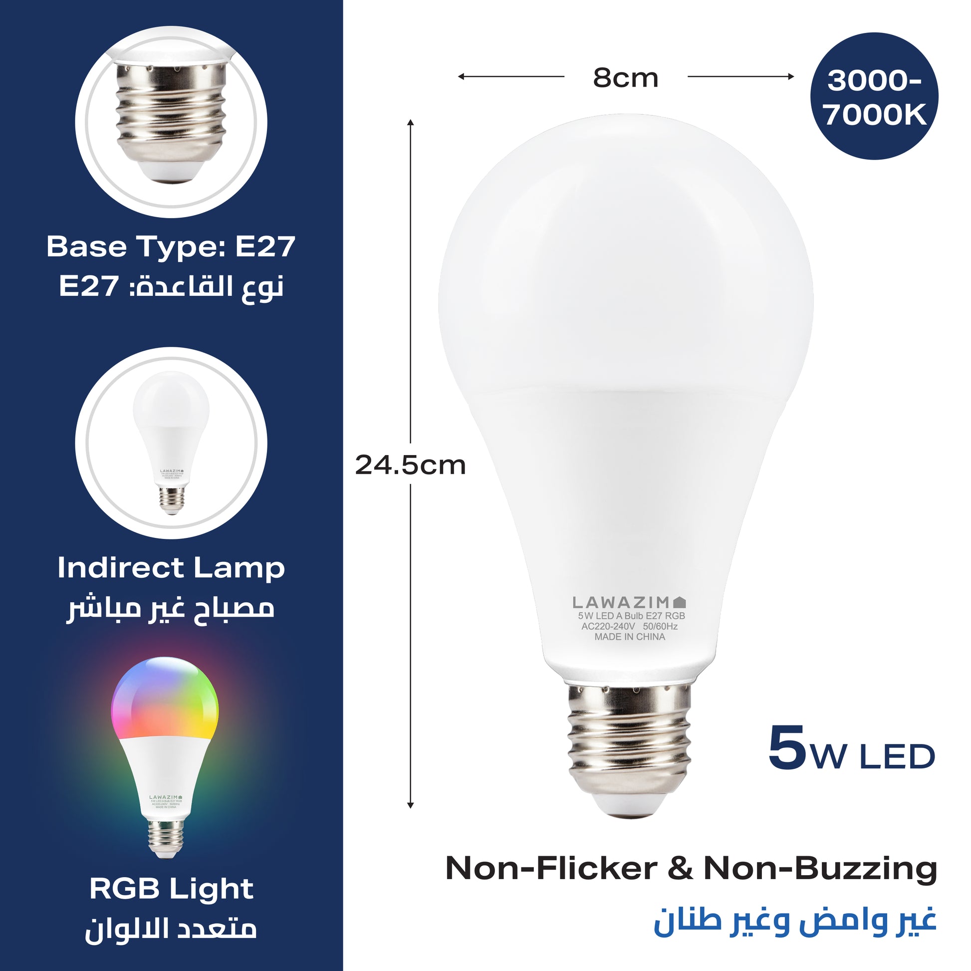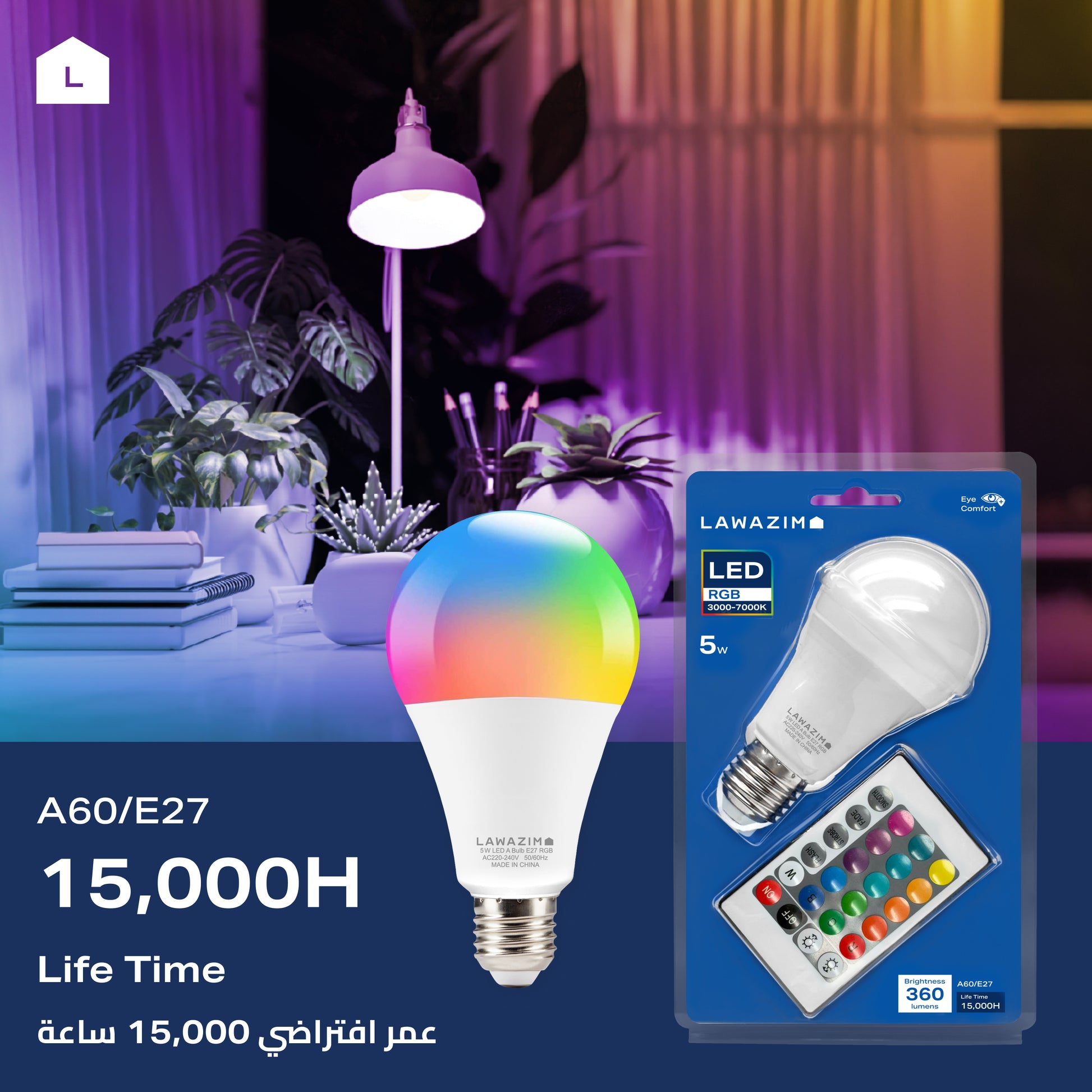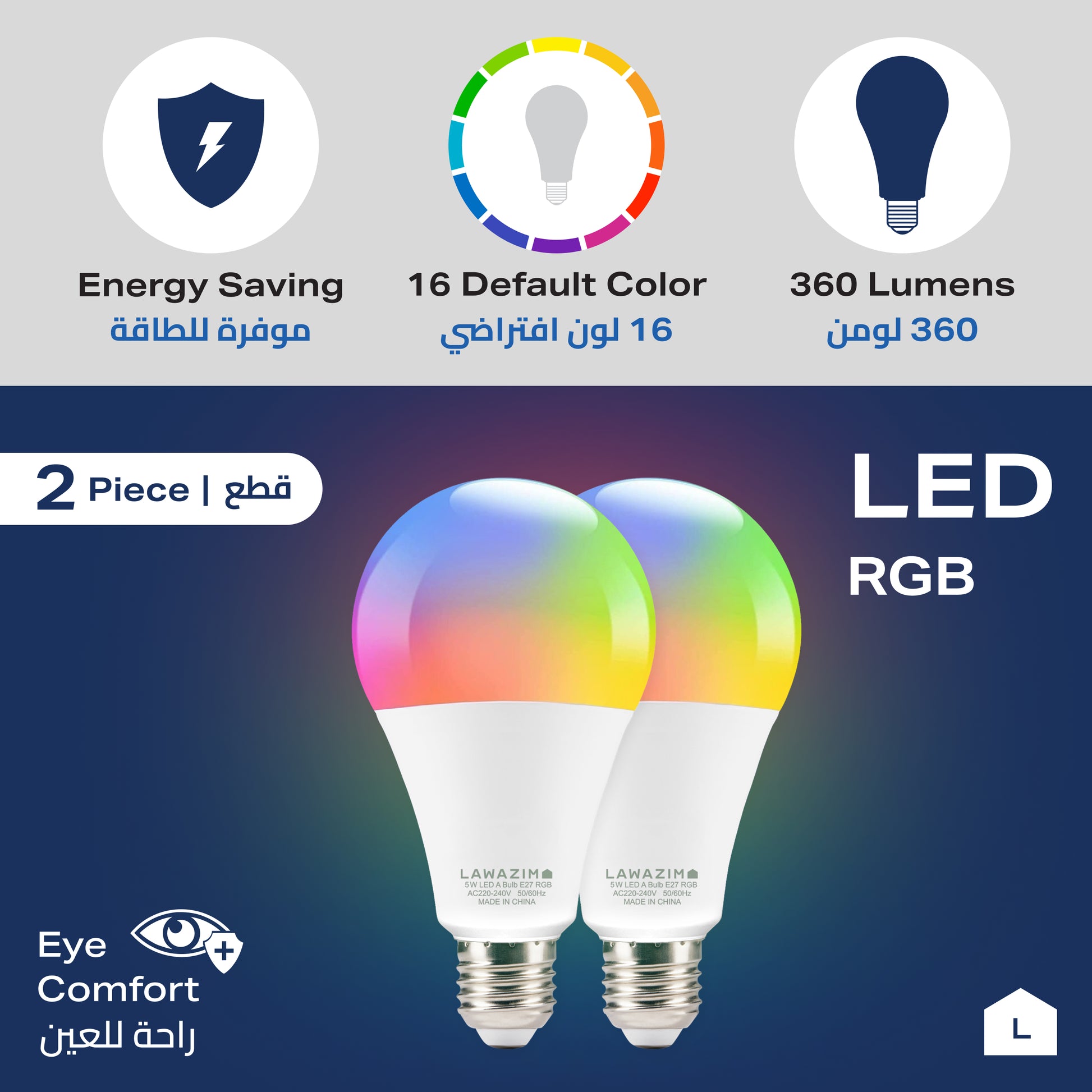 5W LED Bulb A60 E27 - 2 Pack 3000-7000K RGB - Color Changing Light for Home, Bedroom, and Living Room