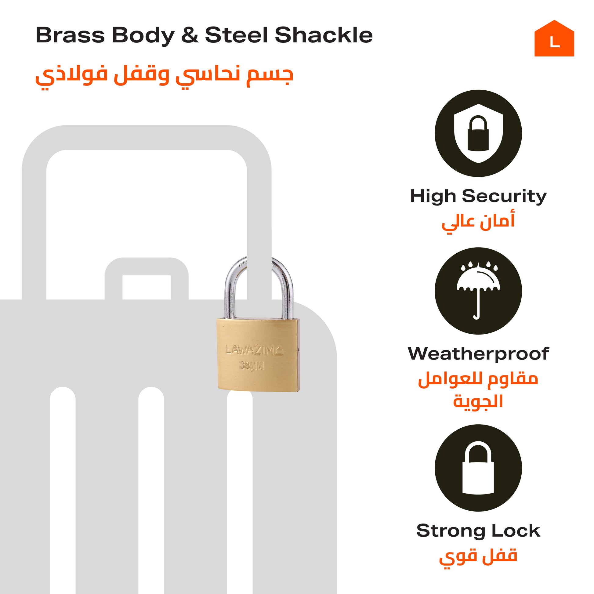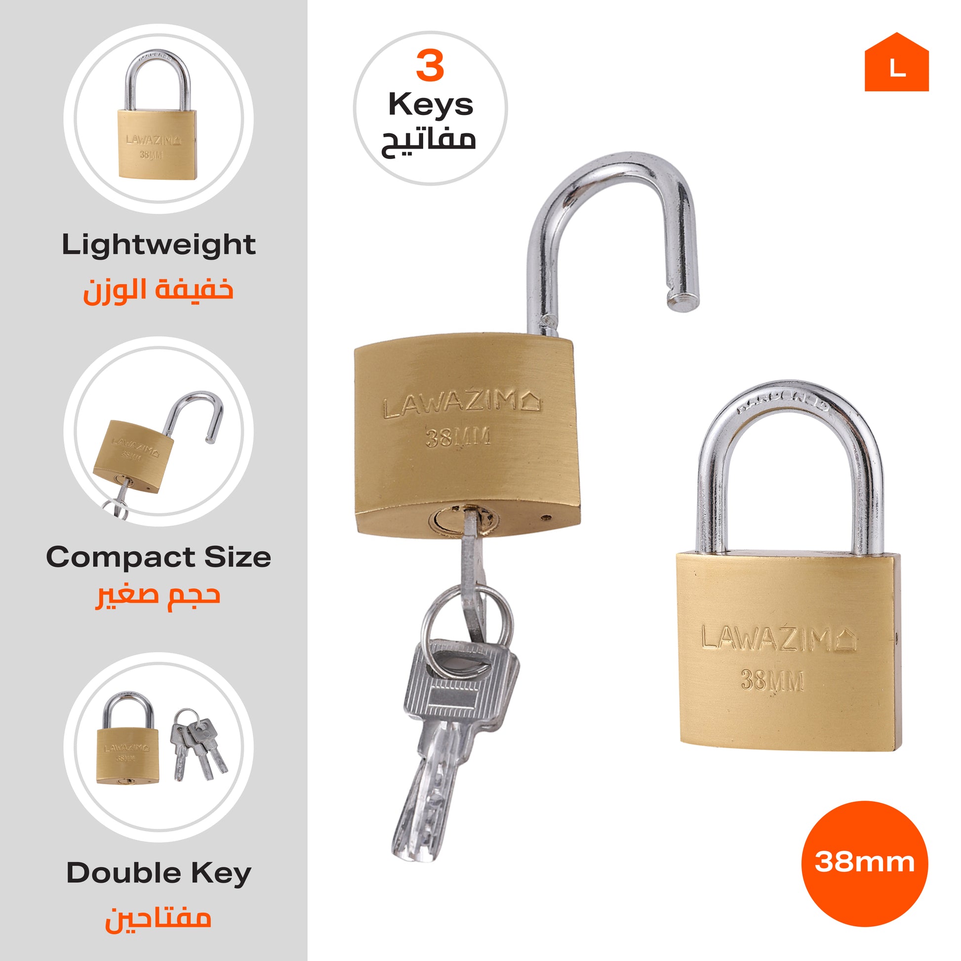 Brass Padlock with 3 Keys - 38mm Lock for Gates, Doors, Sheds, Lockers, Toolboxes, Bikes, Luggage, and Cabinets