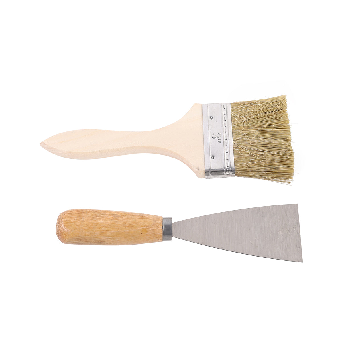 Brush with Putty Knife Set - 2 Piece Synthetic Bristle Paint Brush and Scraper for Wall Repair, Surface Prep, and DIY Projects