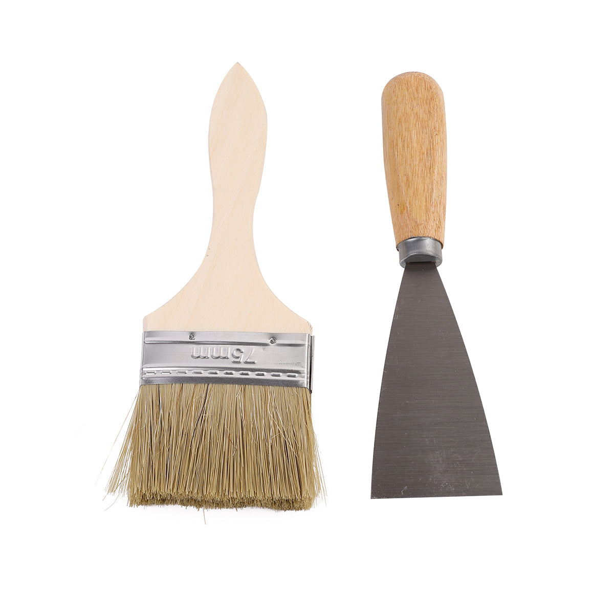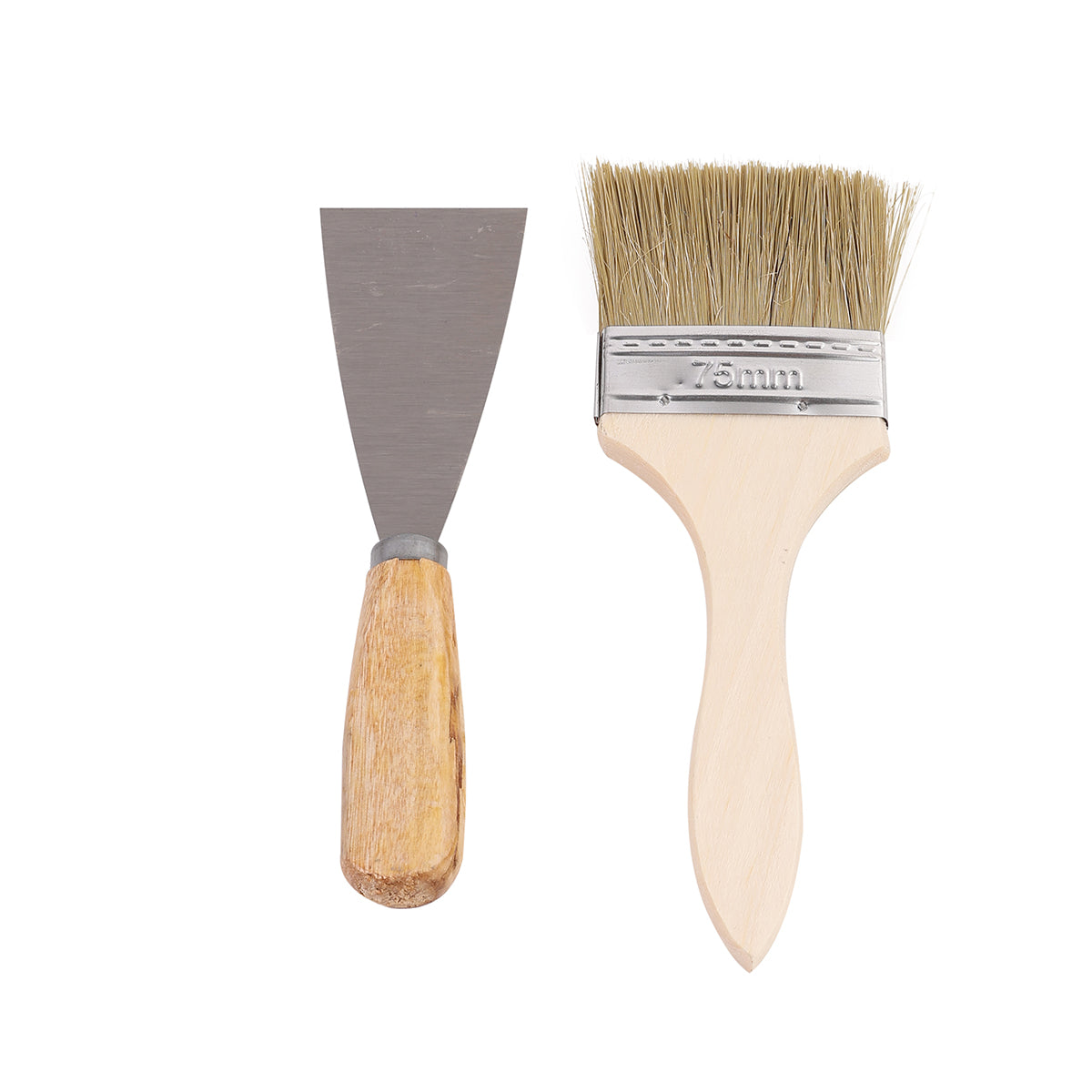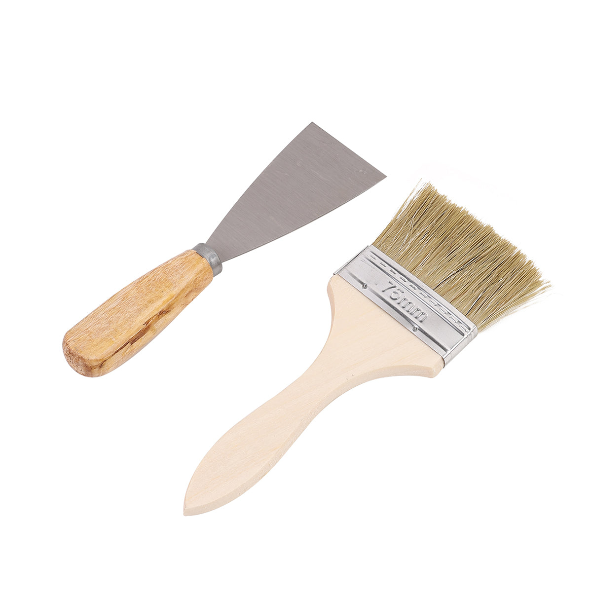 🖌️ [Dual Tools] Set includes a 75mm synthetic bristle paint brush and a putty knife for wall repair, painting, and surface preparation