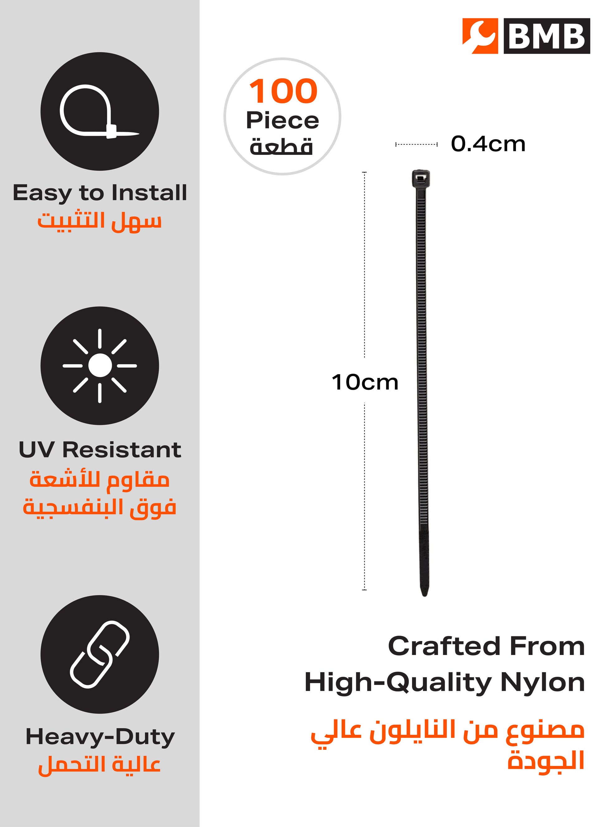 Cable Tie - 100 Piece Pack, 100mmx4mm Black Nylon Zip Ties for Cable Management, Electrical Work, DIY, and Automotive Use