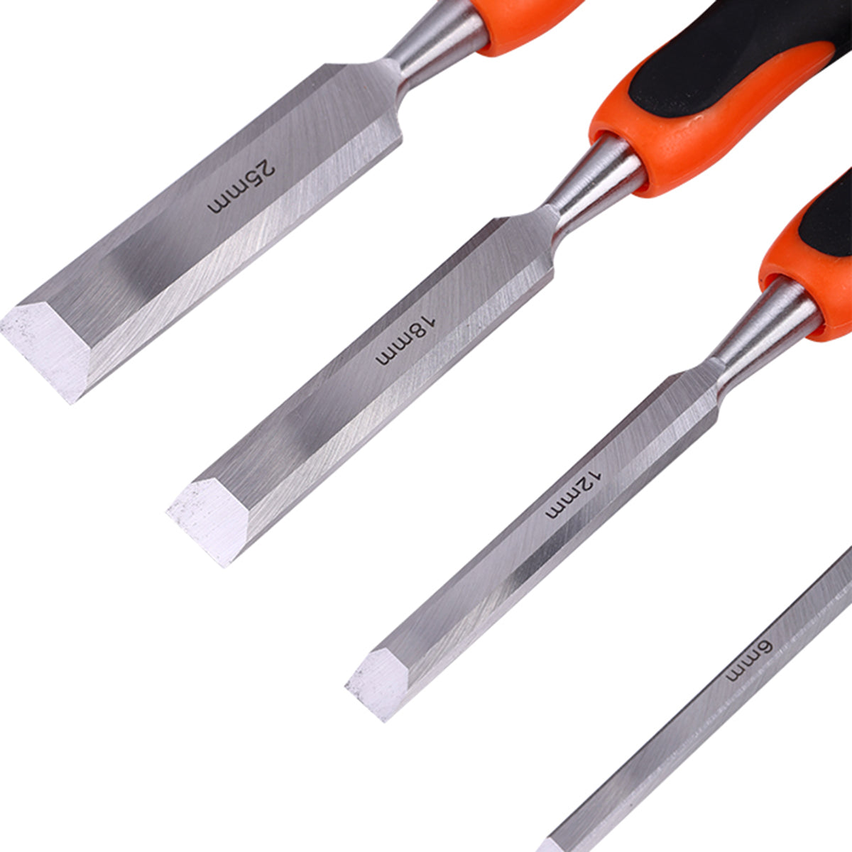 🔪 [Beveled Blades] Includes 6mm, 12mm, 18mm, and 25mm chisels with beveled edges for precise carving and shaping on various wood types.