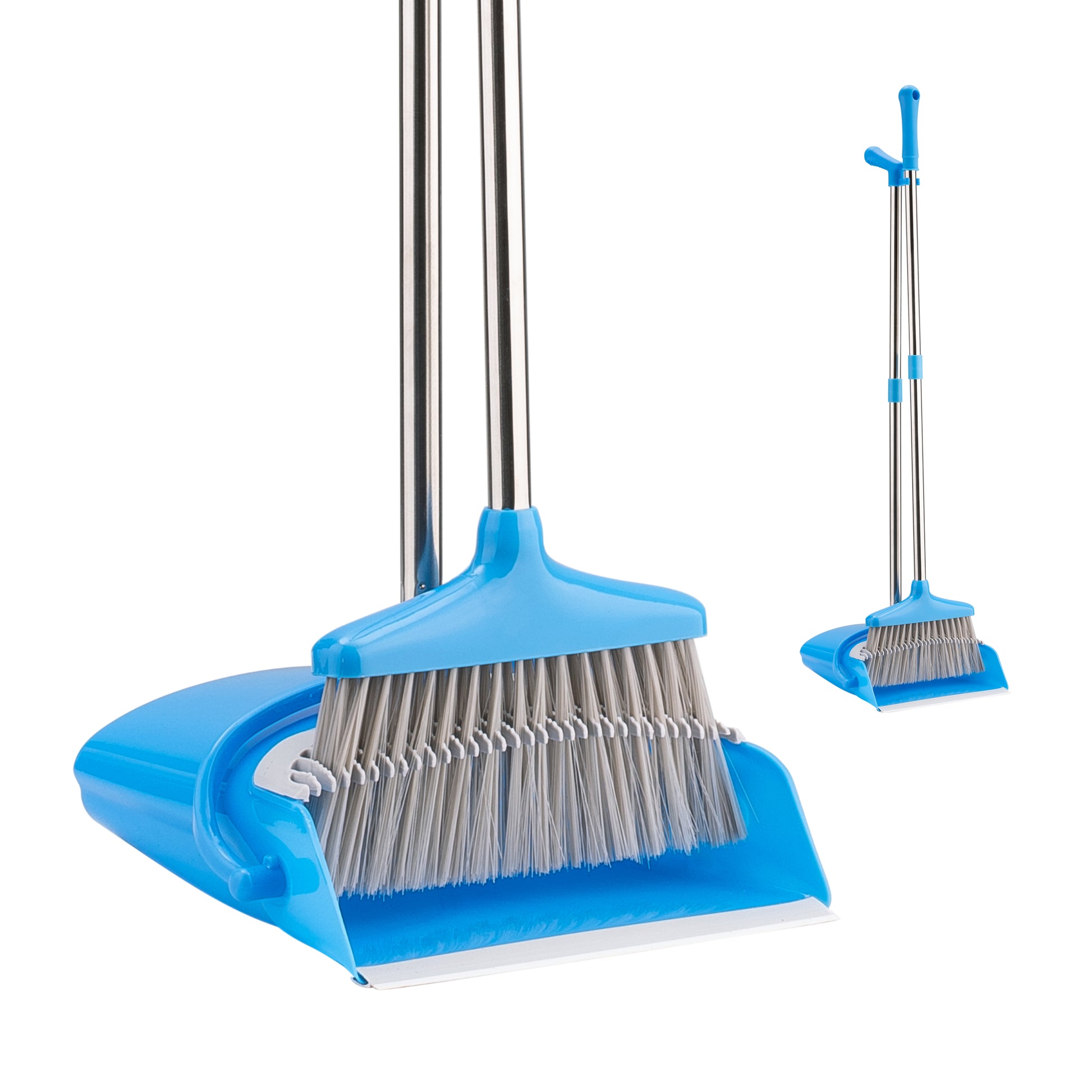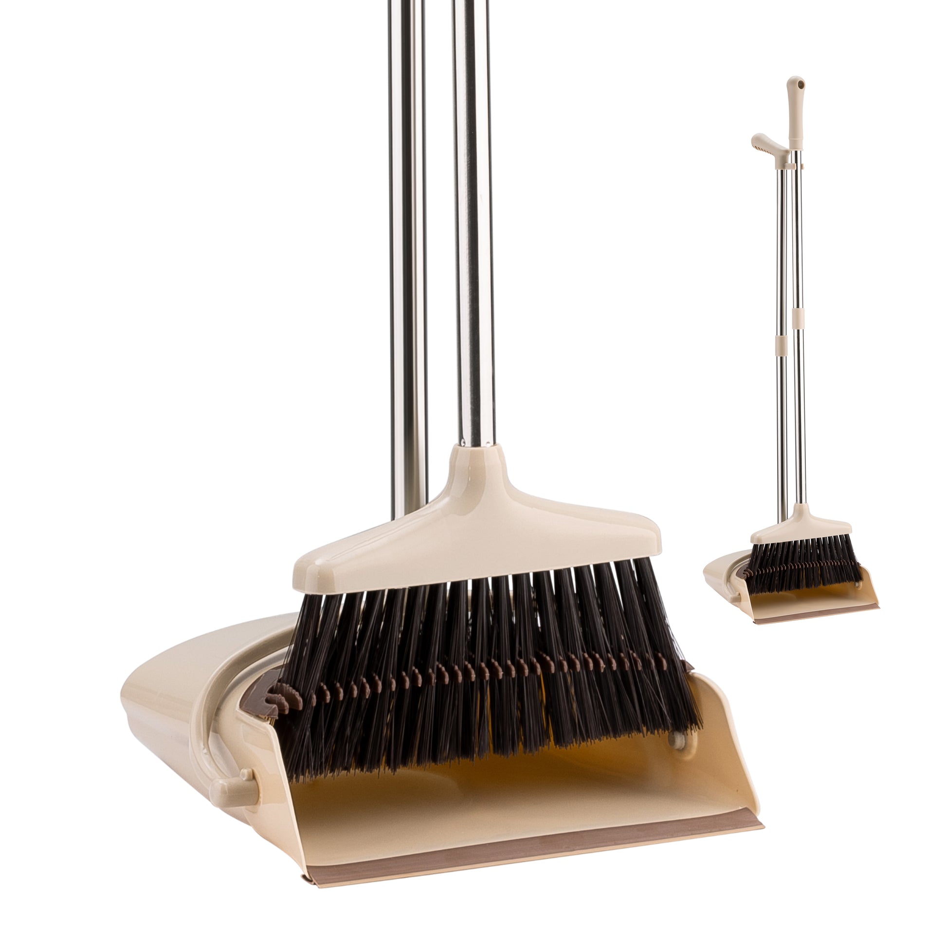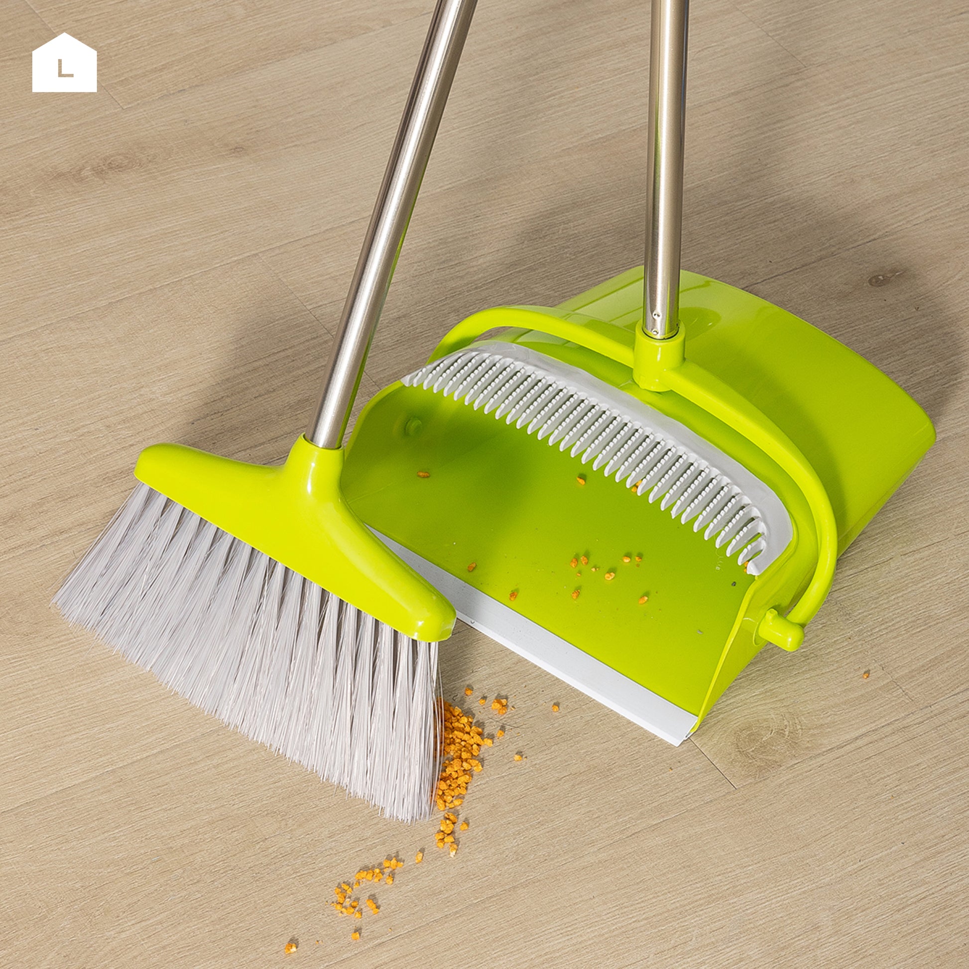 📏 [Compact Storage] Dustpan clips onto the broom handle for upright, space-saving storage in closets or utility areas.