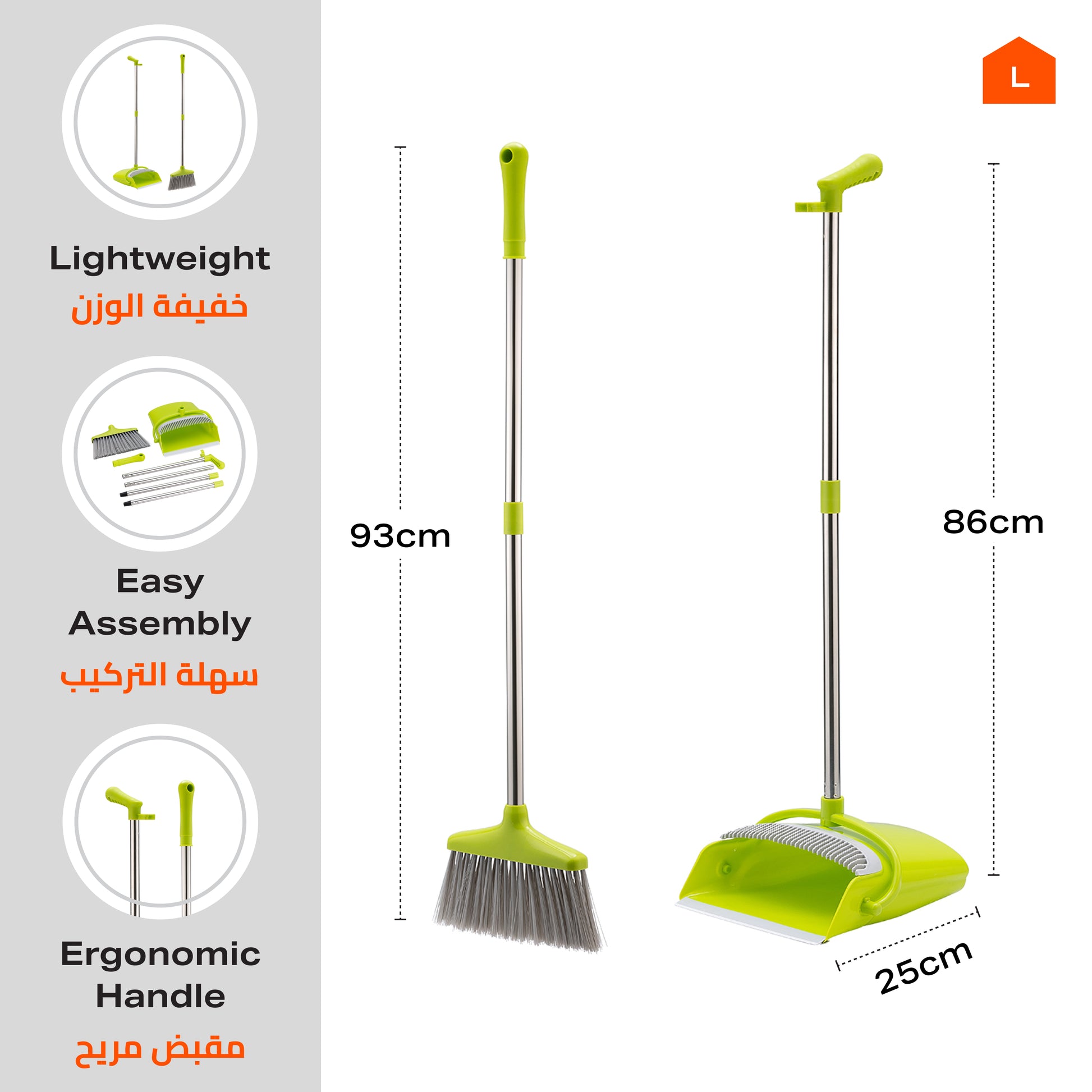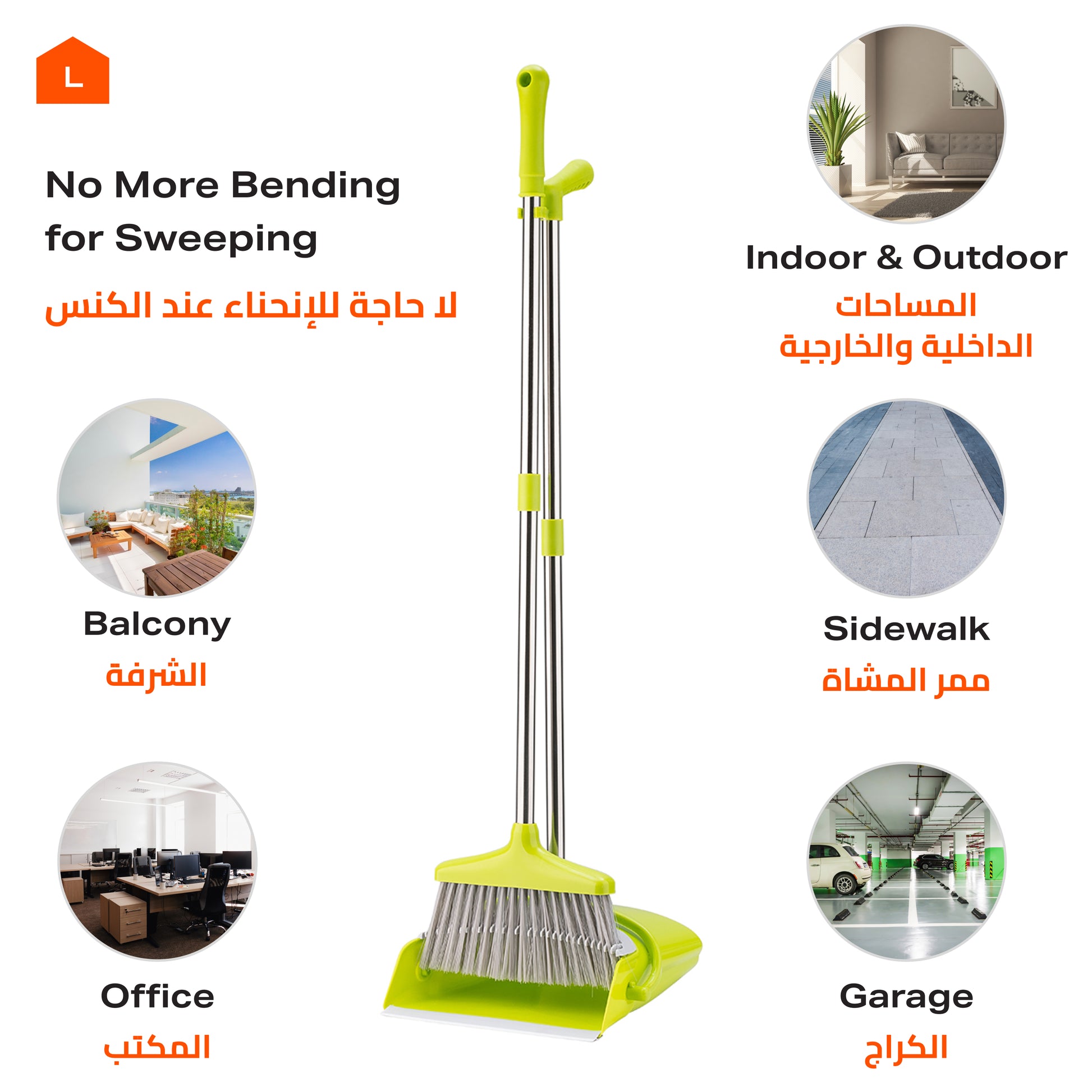 Dustpan and Broom Set - Easy-Storage Cleaning Set for Home, Office, Indoor, and Outdoor Use