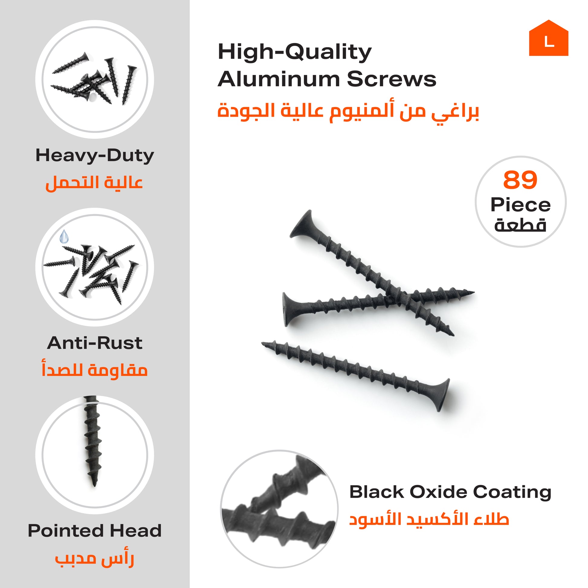 Hardware Drywall Screws Kit - 89 Piece Black Assortment Set for Drywall, Sheetrock, and Carpentry