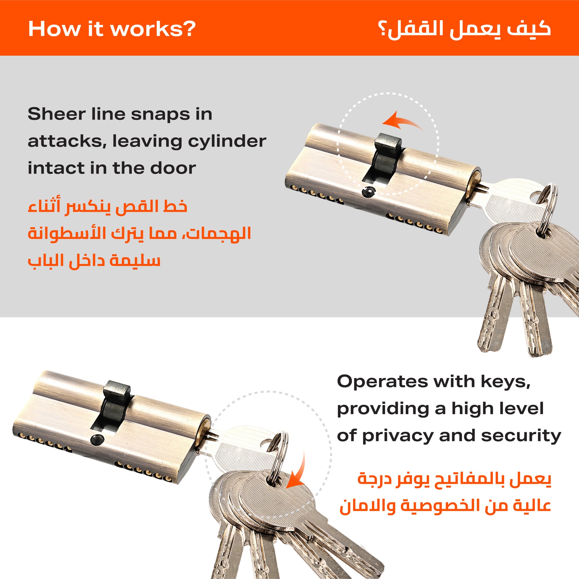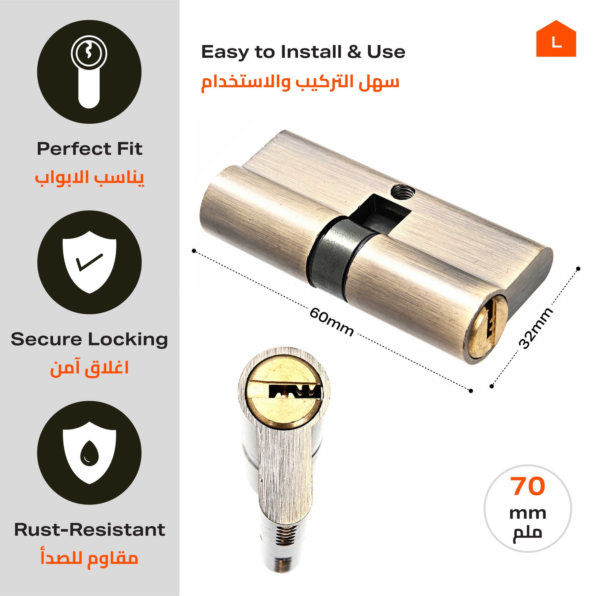 Lock Cylinder with 5 Keys - 70mm Brass Core Cylinder Lock for Doors, Garages, and Storage Units