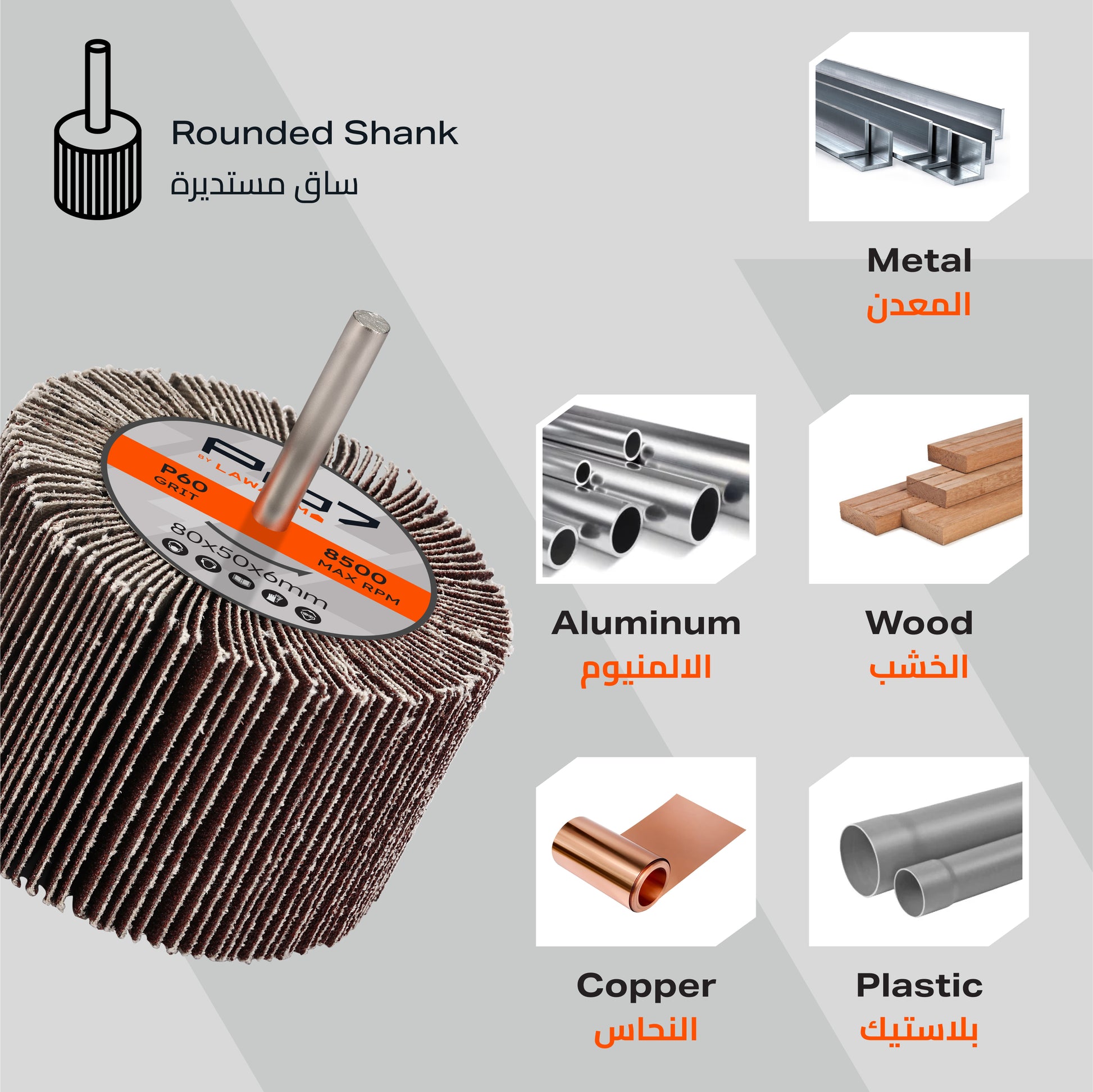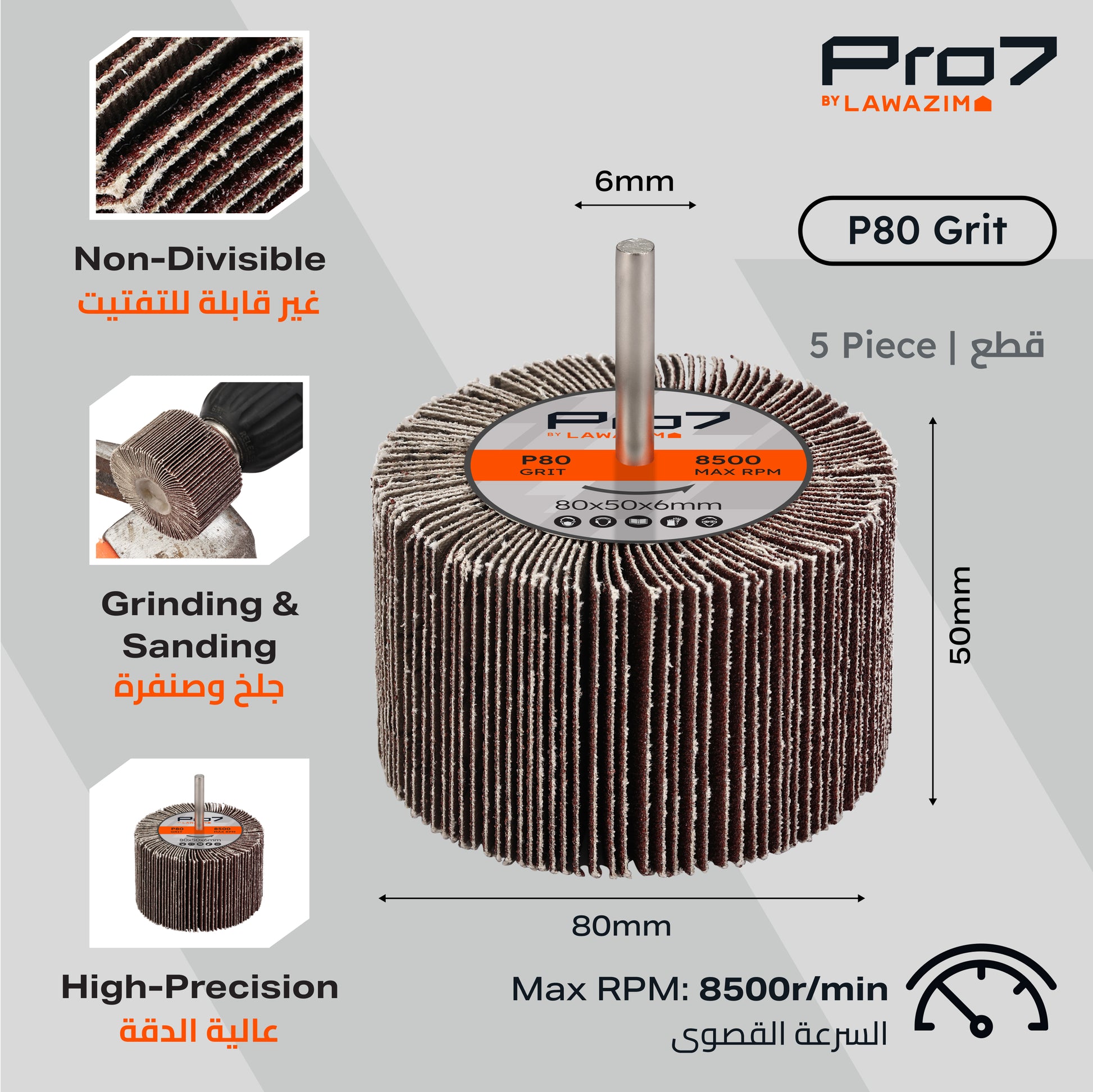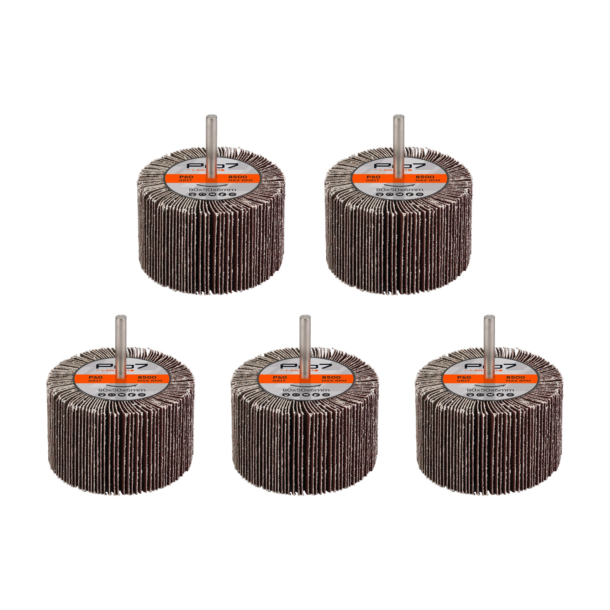 Sanding Flap Wheel for Drill - 5 Piece, 80x50mm - 1/4 inch 6mm Shank Aluminum Oxide Grinding & Polishing Wheels for Metal, Wood, and Paint Removal