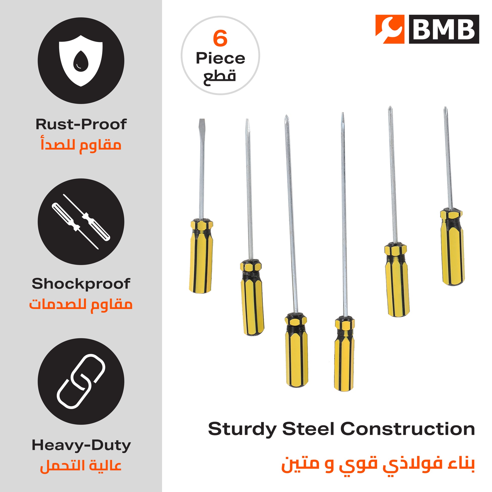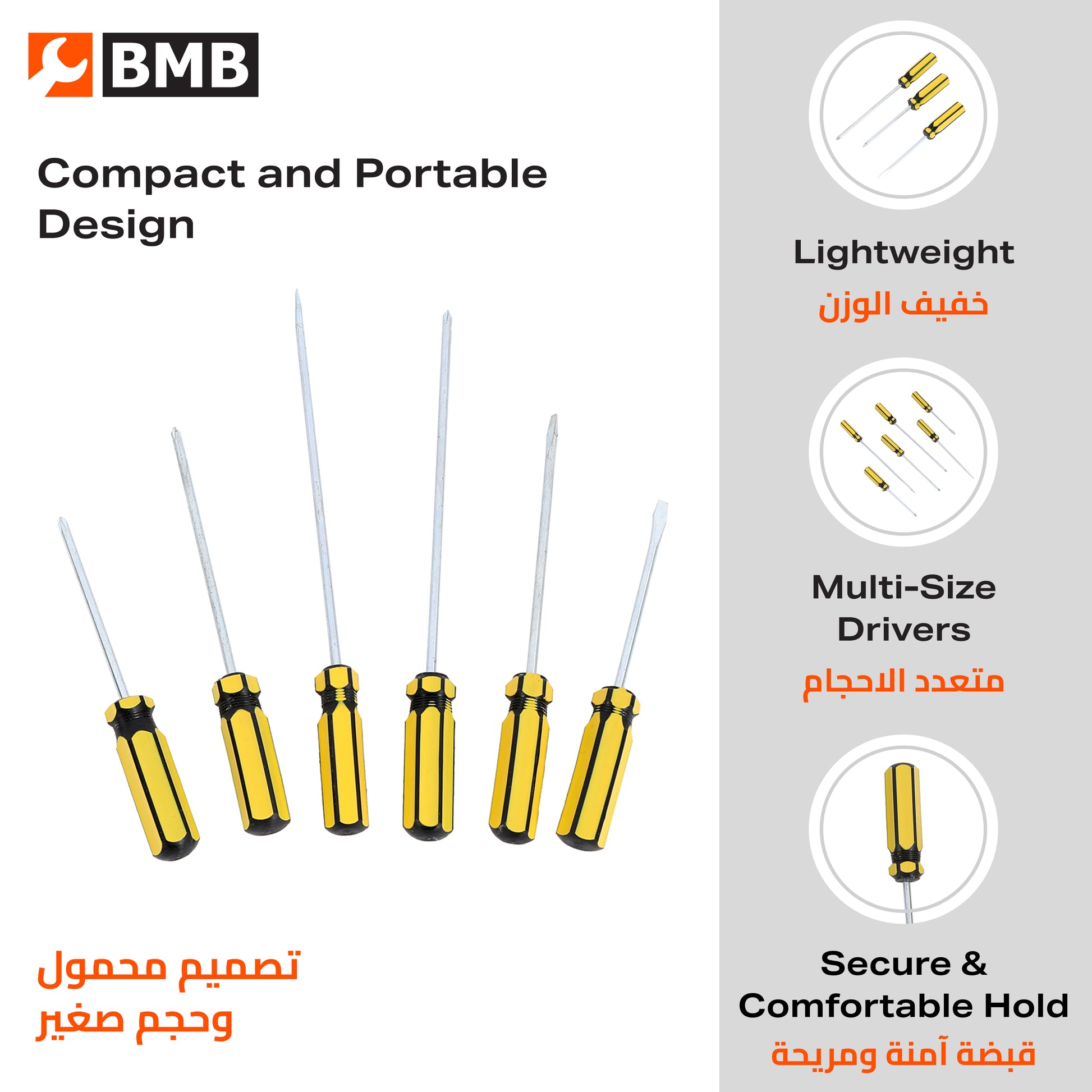 Screwdriver Set 6 Piece Yellow - Phillips and Flathead Screwdrivers for Home Repair, DIY Projects, Furniture Assembly, and Automotive Maintenance